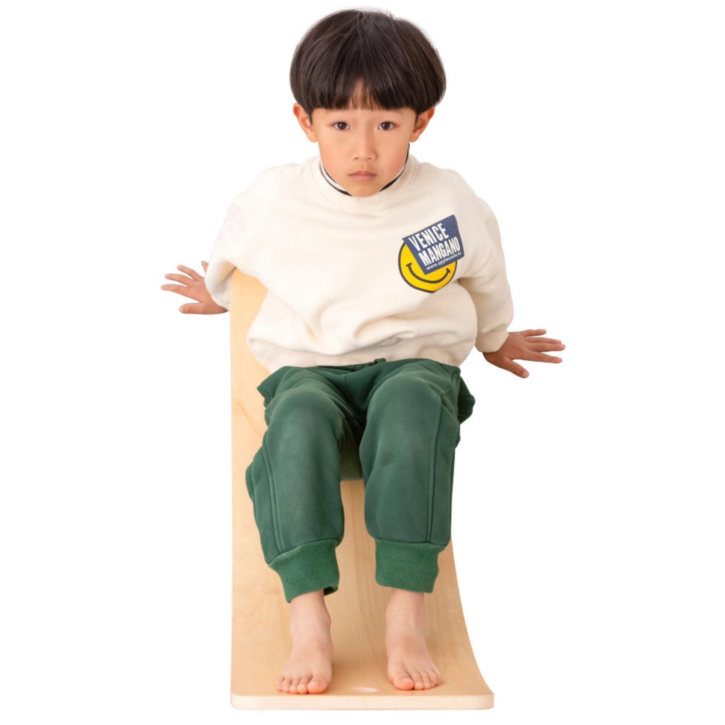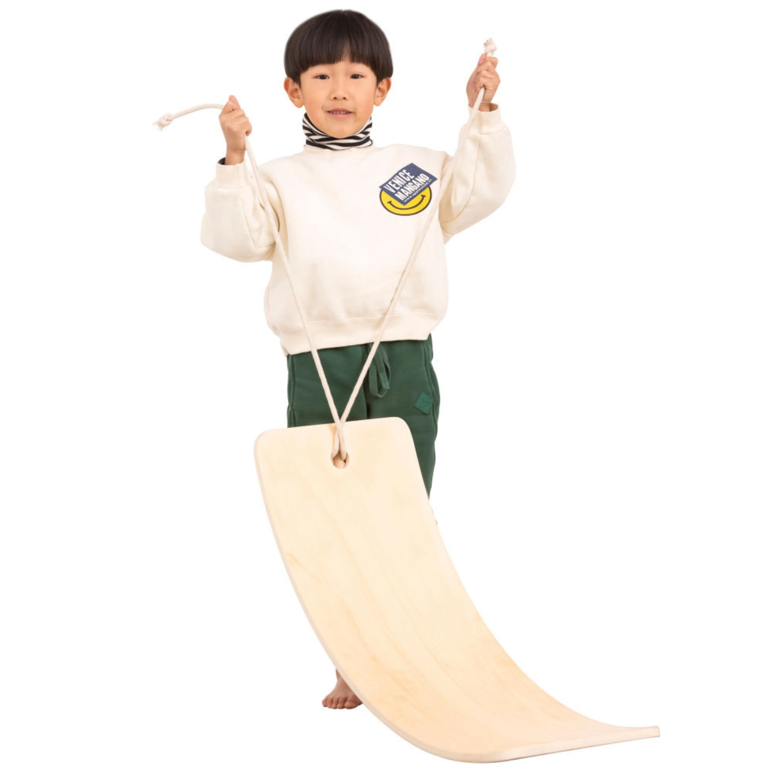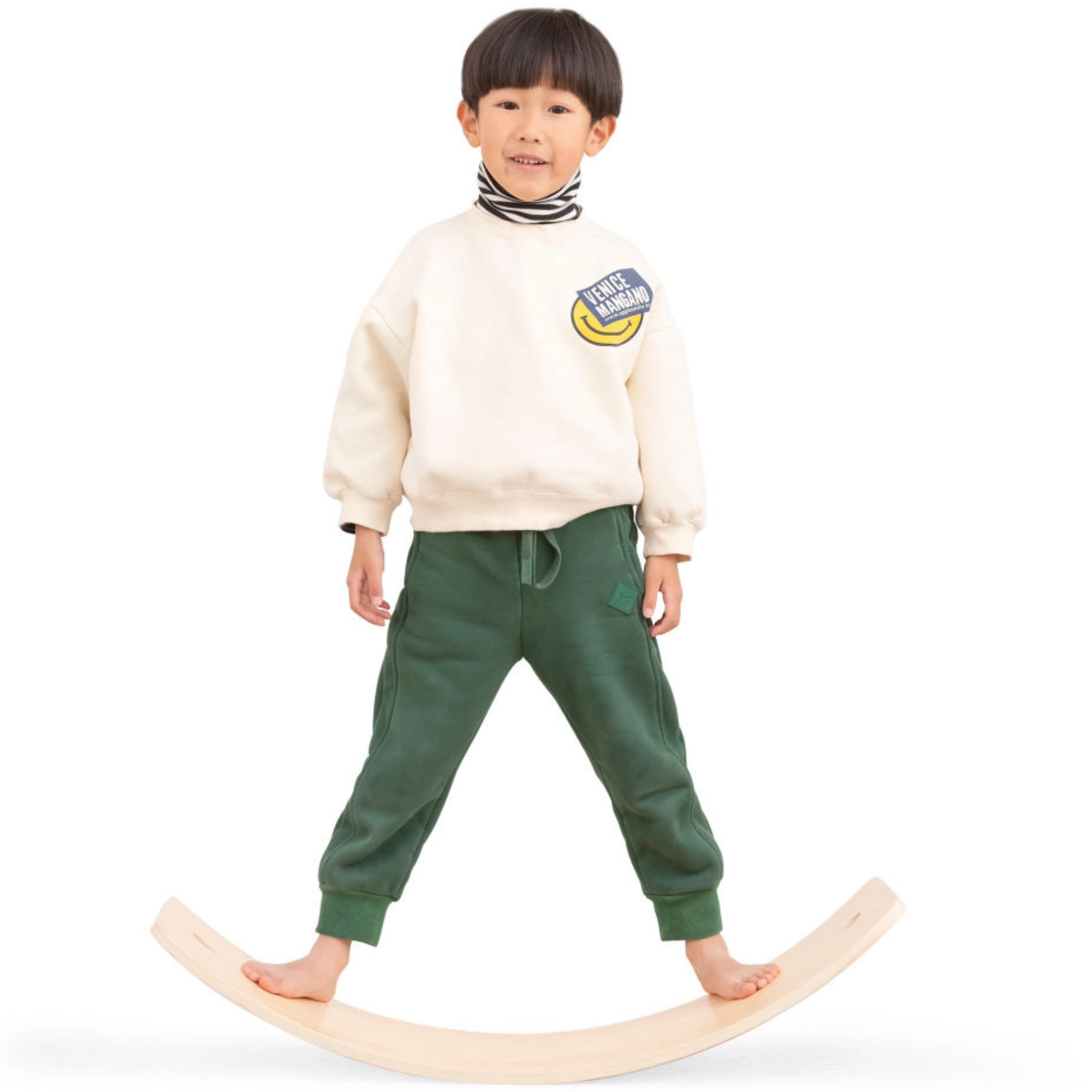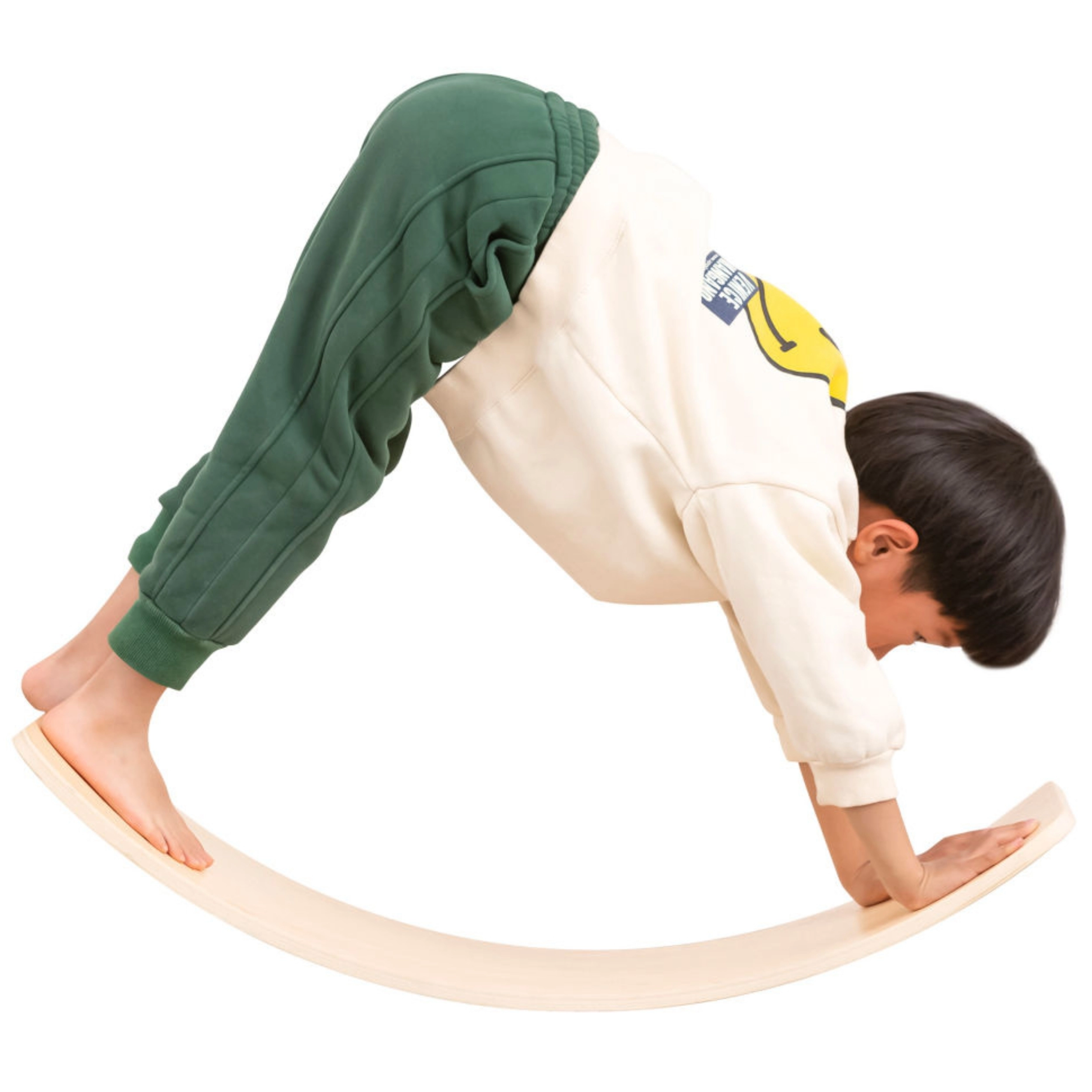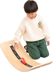 Izliektais dēļa formas dizains iedrošina bērnus šūpoties, stāvēt un pozēt, attīstot koordināciju, stabilitāti un ķermeņa centru drošā un aizraujošā veidā.