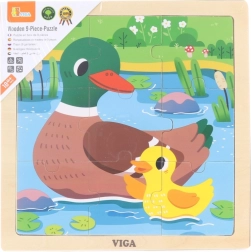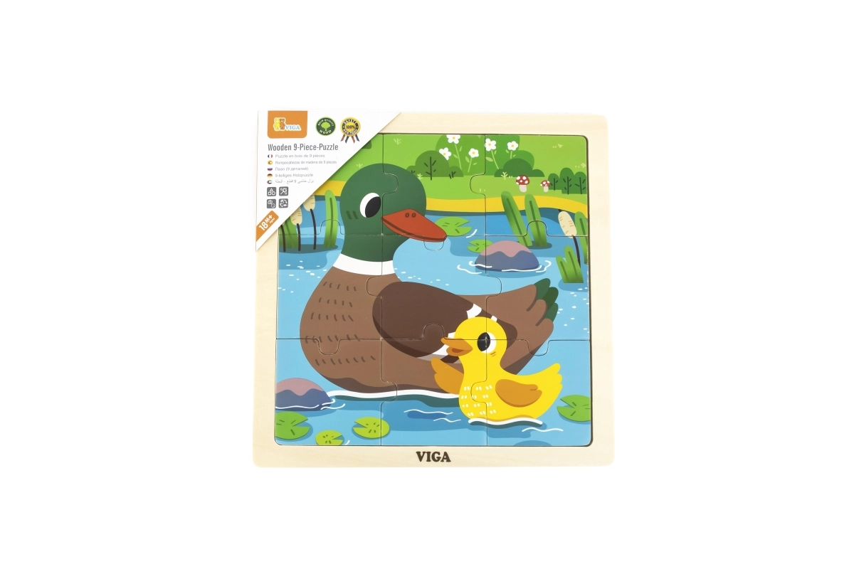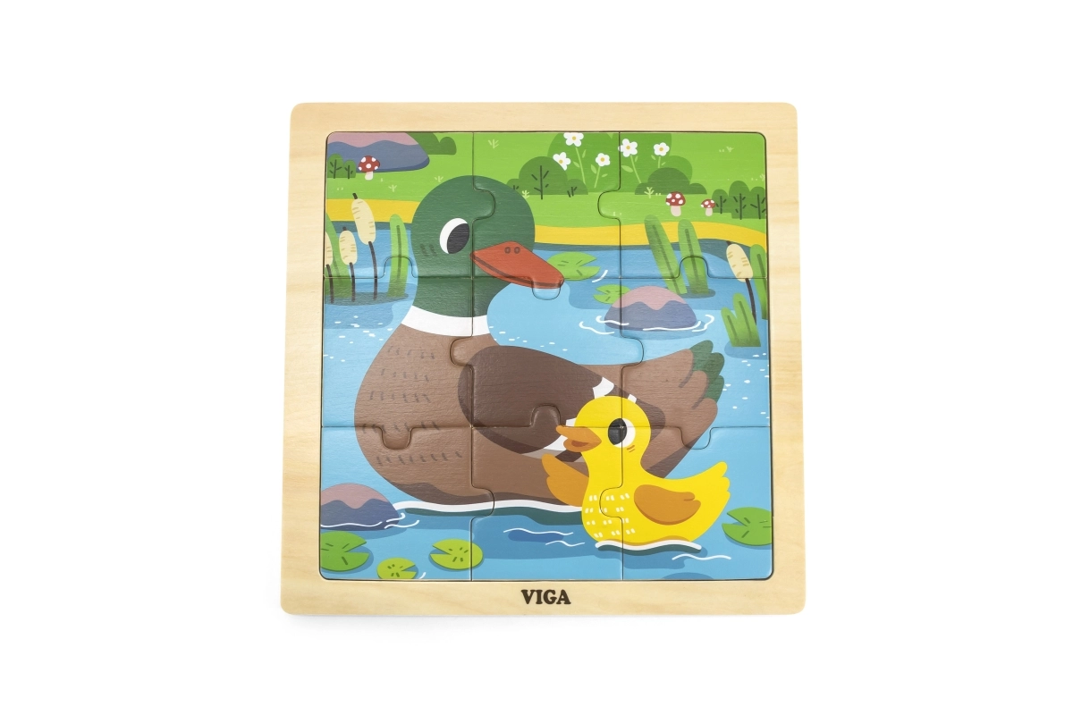 Bērnu koka puzle ar pīles un pīlēna motīvu piedāvā jautru mācīšanos caur spēli. Deviņi izturīgi gabali tiek likti koka rāmītī, veidojot jautru dīķa attēlu. Spilgtas krāsas, izturīgs materiāls un pārdomātas gabalu formas atvieglo satveršanu un pirmos panākumus puzles likšanā.