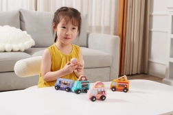 Pateicoties kompaktajam izmēram, mašīnītes ir ērti satveramas arī pašām mazākajām rociņām. Spēle veicina sīko motoriku, koordinācijas prasmes, krāsu atpazīšanu un loģisko domāšanu. Komplekts lieliski papildina bērnu virtuvītes vai rotaļu pilsētas un ir lieliska izvēle kopīgai spēlei ar brāļiem un māsām.