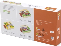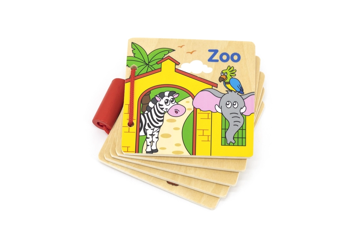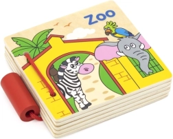 Šī mīlīgā koka grāmatiņa ar Zoo tematiku piedāvā bērniem pirmo iepazīšanos ar dzīvniekiem rotaļīgas mācīšanās veidā. Biezās koka lapas ar skaidrām ilustrācijām attīsta vizuālo uztveri, sīko motoriku un koncentrēšanos. Pateicoties kompaktajam izmēram, tā ir ideāli piemērota līdzi ņemšanai un bērna istabai.