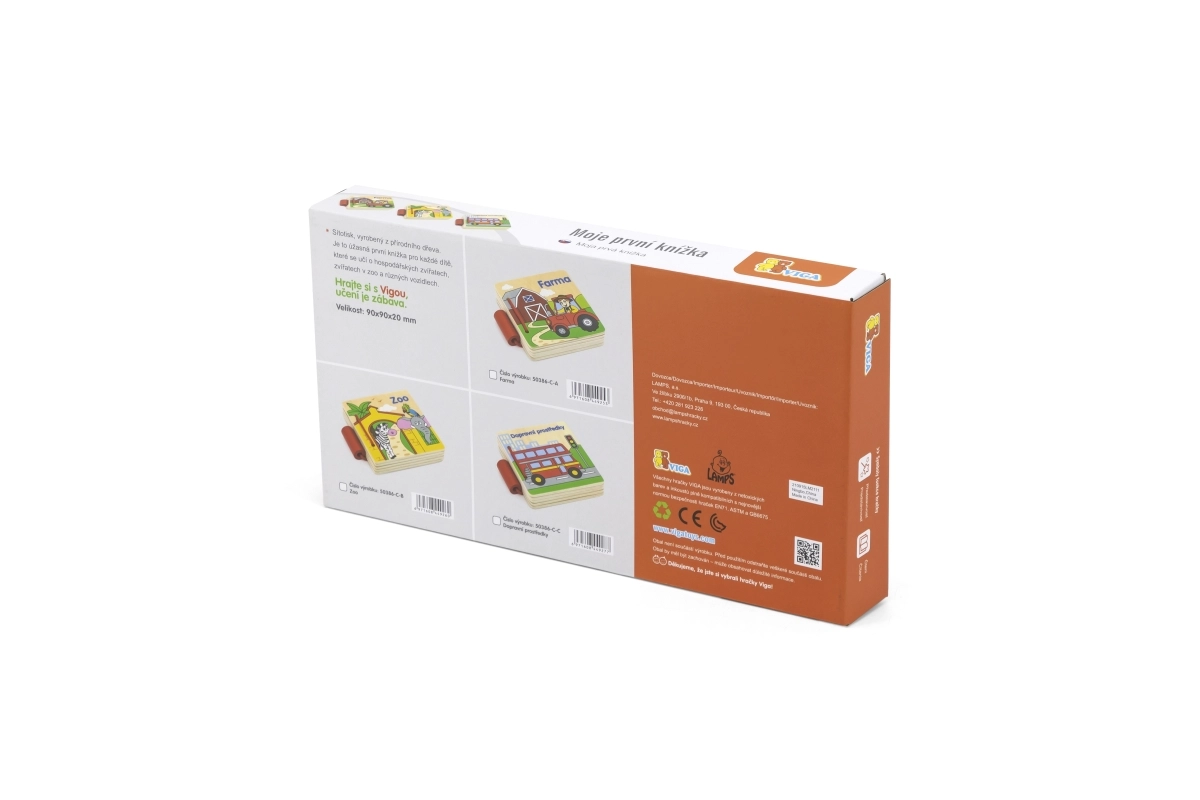 Praktiskā sarkanā aukliņu iesiešana notur lapas kopā un atvieglo bērniem drošu pāršķiršanu. Grāmatiņa ir čehu valodā, tāpēc veicina agrīnu runas attīstību un pirmo vārdu apguvi. Lieliska izvēle vecākiem, kuri meklē izturīgu un izglītojošu rotaļlietu mazuļiem.
