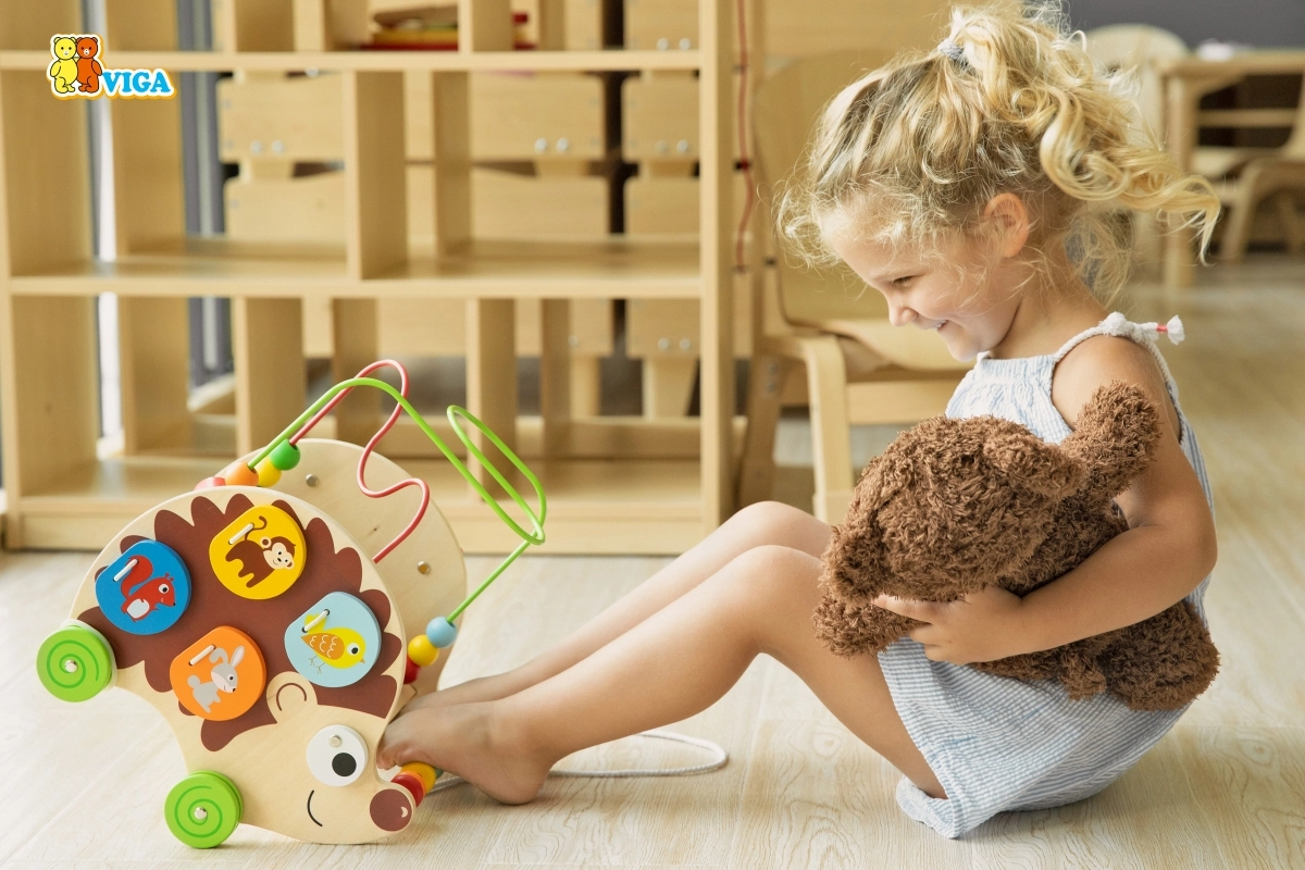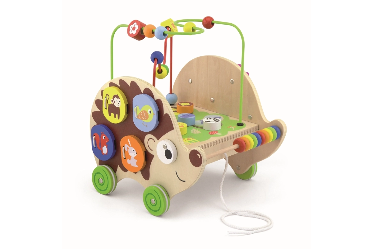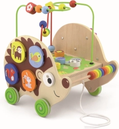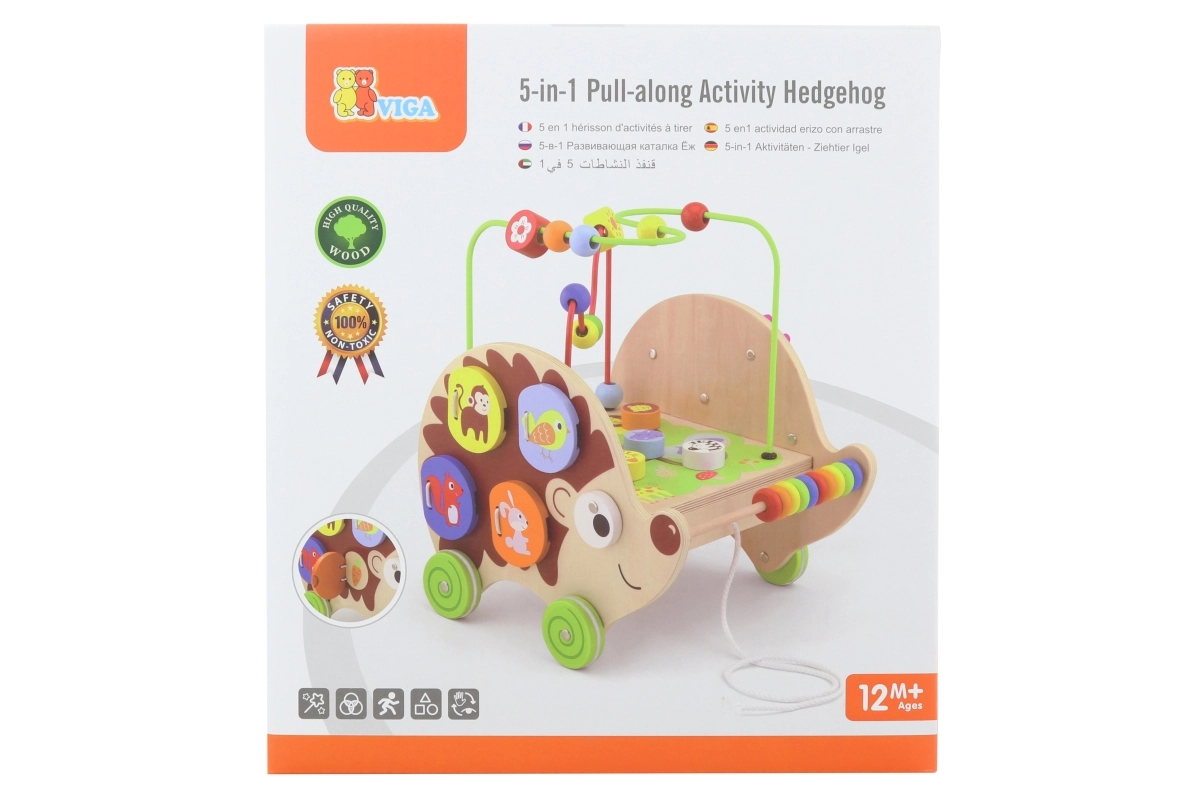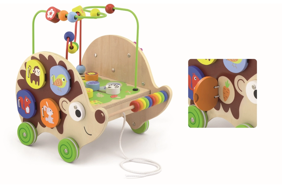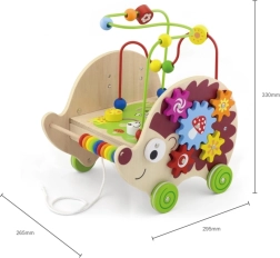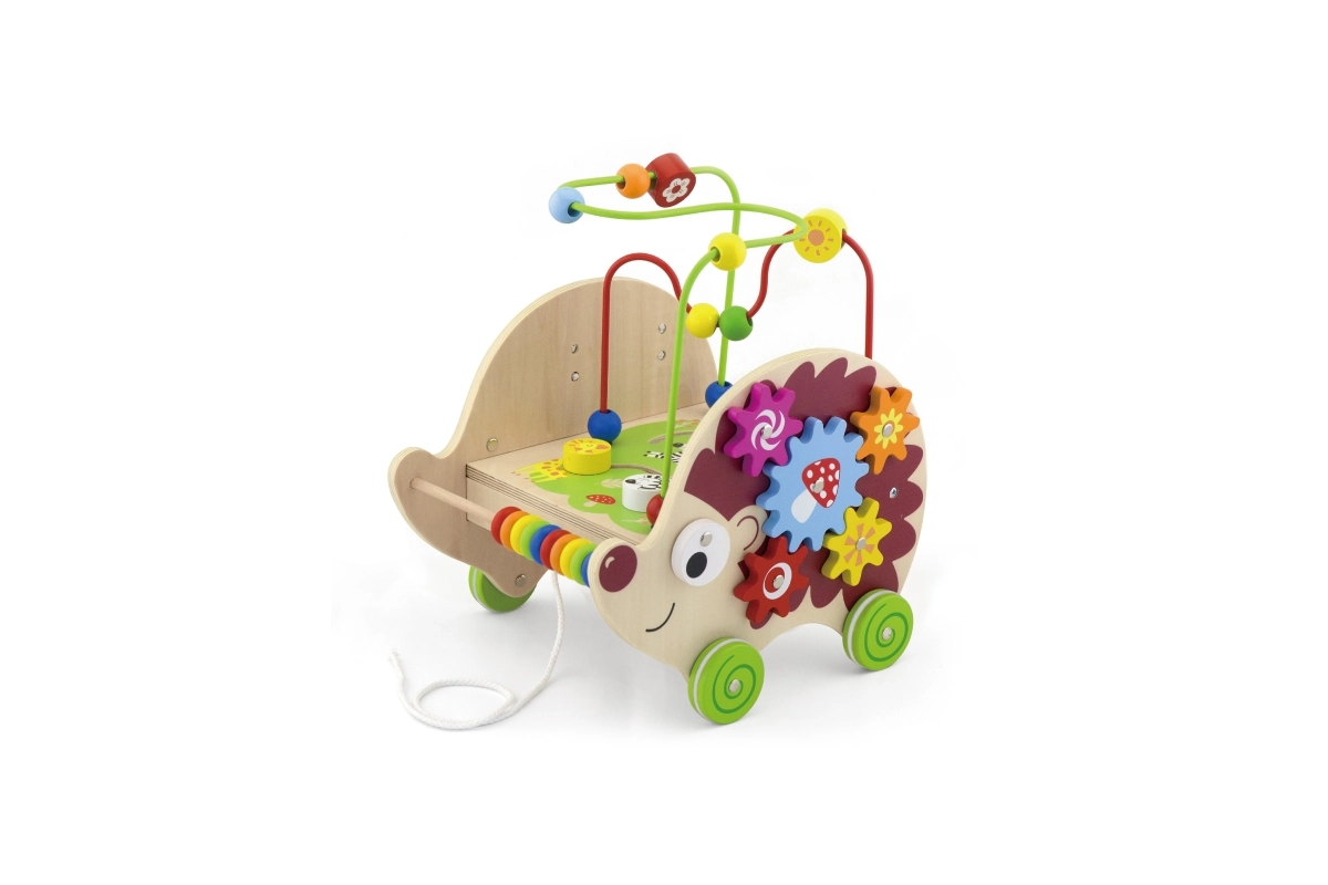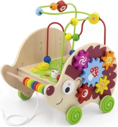 Šī daudzfunkcionālā VIGA velkamā rotaļlieta ežuka veidolā apvieno iecienītus izglītojošus elementus vienā gudrā spēļu centrā. Bērniem patīk bīdīt krellītes kuliņu labirintā, griezt zobratus, iziet cauri labirintam ar dzīvnieciņiem, mēģināt skaitīšanu un atklāt izglītojošus rotējošus elementus. Košās krāsas dabiski aicina uz izpēti un veicina koncentrēšanos.