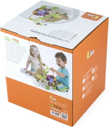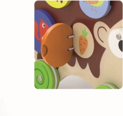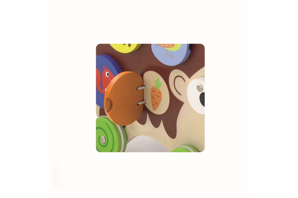 Skaitīšana, bīdāms labirints ar dzīvnieciņiem, krellīšu/kuliņu labirints, zobrati un izglītojoši rotējoši elementi – viss vienā rotaļlietā ilgām atklājumu stundām.