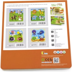 Katra dzīvnieka detaļa ir ar ērti satveramu koka rokturi, kas atvieglo manipulāciju mazām bērnu rociņām.