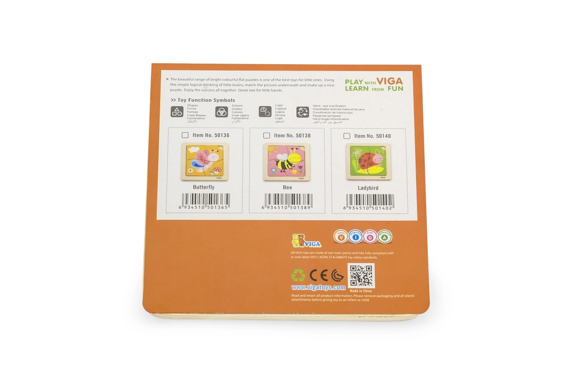 Šī skaistā koka rotaļlieta ir lielisks papildinājums gan mājās, gan bērnudārzā. Tā sastāv no četriem tematiskajiem gabaliņiem, kas izgatavoti no augstas kvalitātes materiāliem un krāsoti ar netoksiskām krāsām. Pamatne satur norādošu attēlu, kas atvieglo salikšanu un padara to jautrāku. Gabaliņi ir veidoti bez asām malām, tāpēc tie ir droši bērniem.