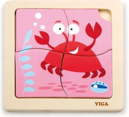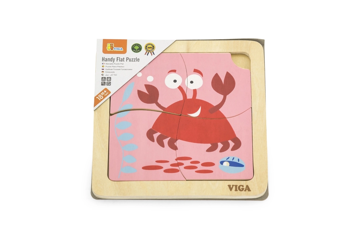Atklājiet izklaidi un mācības vienā ar mūsu koka krabja puzli no VIGA. Radīta bērniem no 18 mēnešu vecuma, šī puzle nodrošina drošu un izglītojošu vidi pirmajai salikšanai.