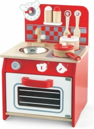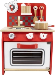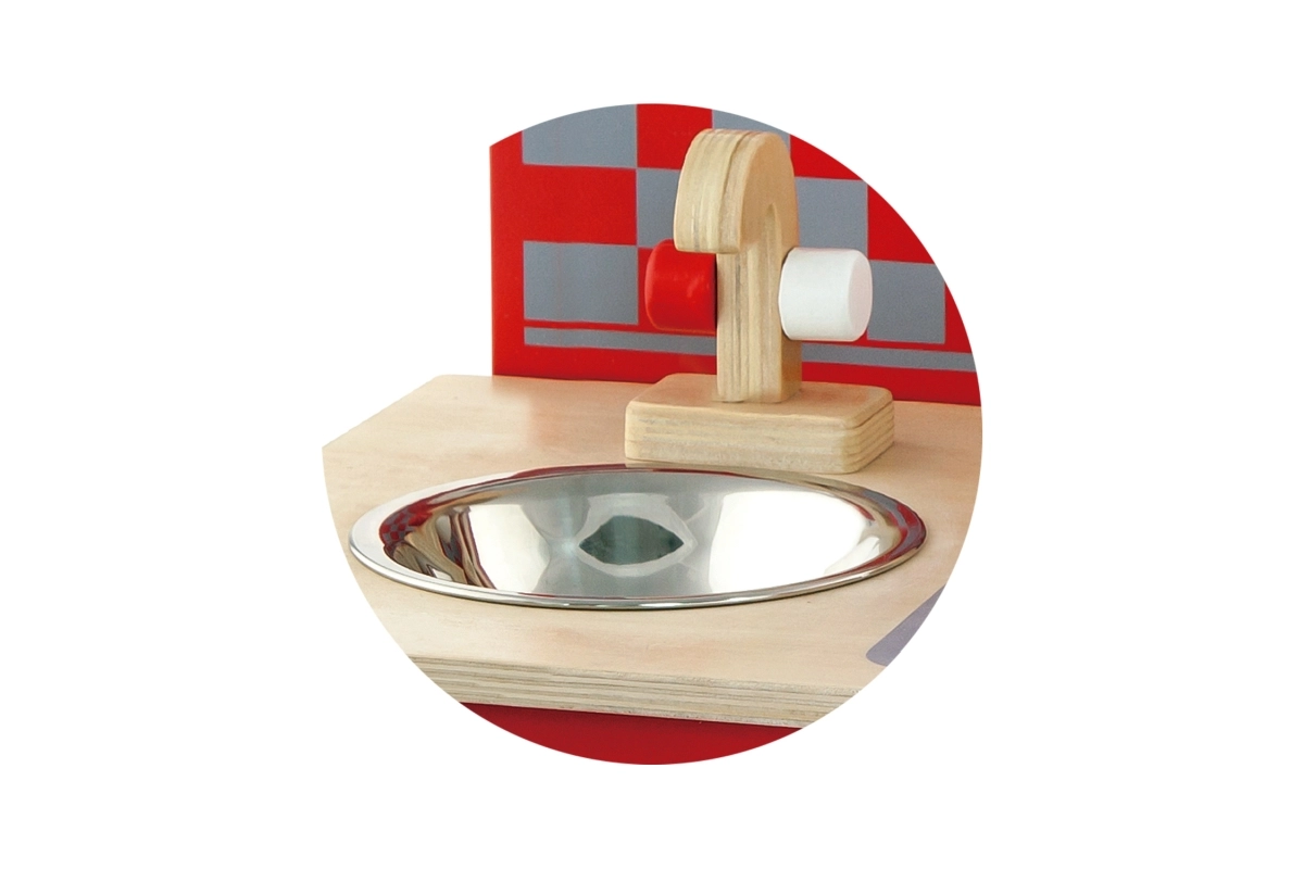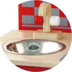 Pateicoties kvalitatīvam koka izpildījumam, šī virtuvīte ir ne tikai izturīga, bet arī estētiski pievilcīga. Iepakojumā iekļauti arī spēļu piederumi, piemēram, lāpstiņa, kauss, katls ar vāku, panna ar vāku un divas garšvielu trauciņi.
