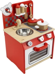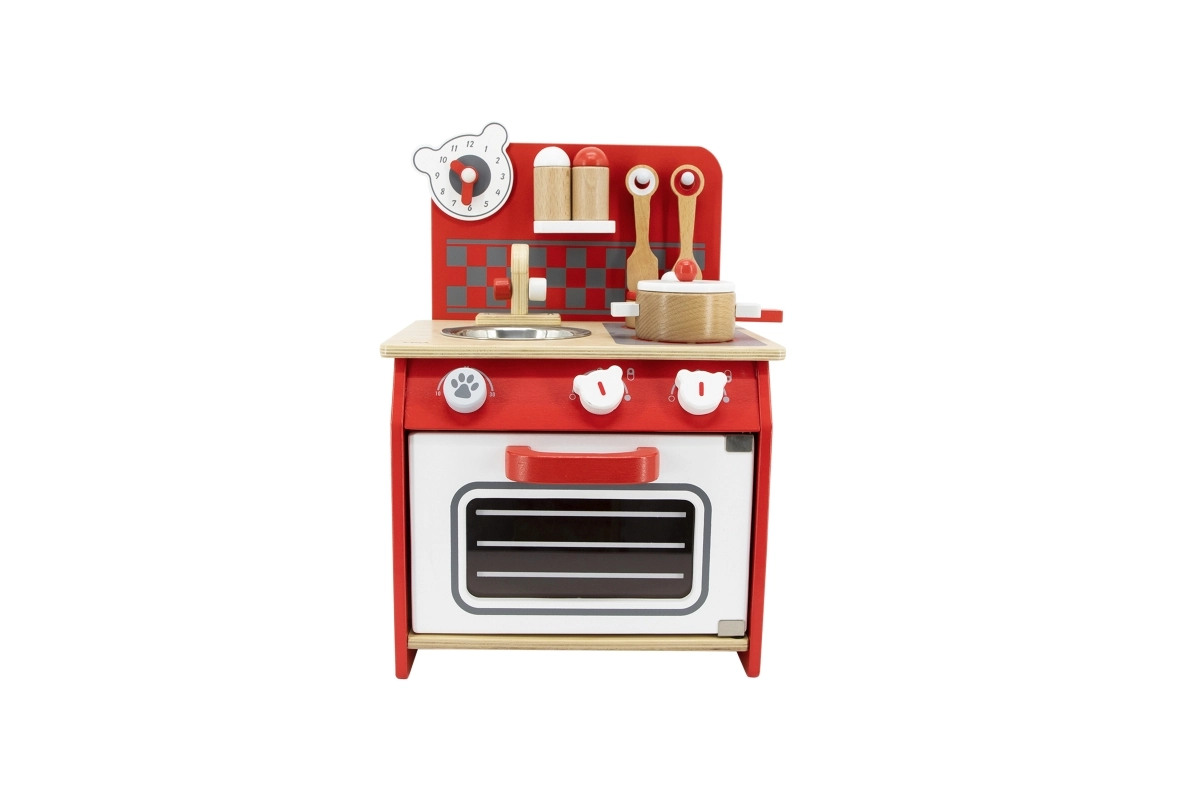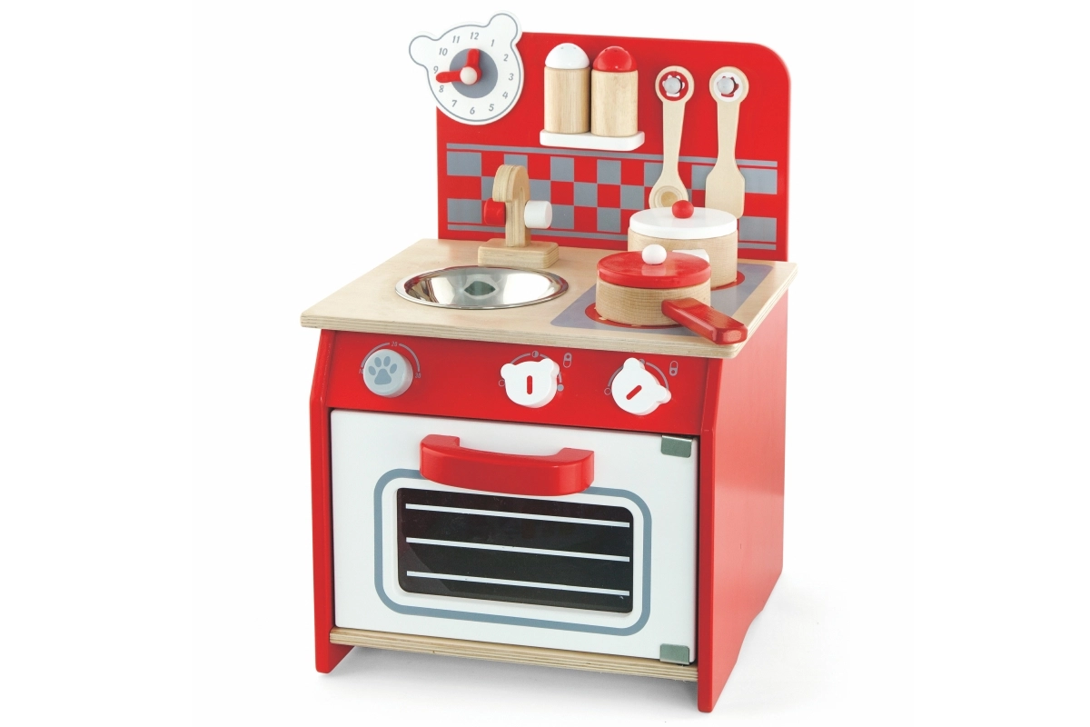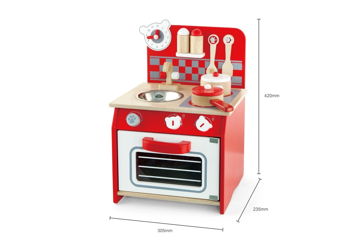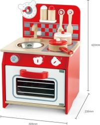 Atklājiet bērnu koka virtuvītes burvību — tā ir radīta, lai attīstītu jūsu bērna fantāziju un prasmes. Šajā komplektā ir visi elementi reālistiskām rotaļām: plīts, cepeškrāsns, izlietne un pat pulkstenis ar kustīgām rādītājām.