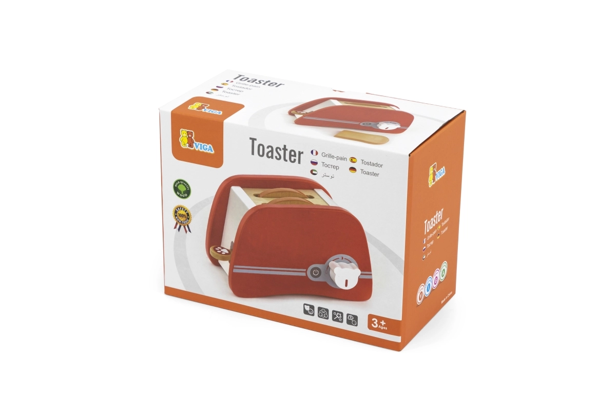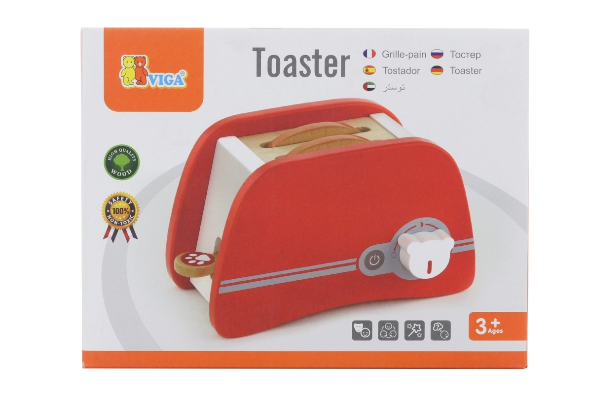 Koka tosteris ir lieliska rotaļlieta bērniem no 3 gadu vecuma, kuri vēlas atdarināt pieaugušos virtuvē. Šis patīkami krāsainais un izturīgais tosteris ļauj bērniem ievietot koka grauzdiņus un iestatīt taimeri, kas nodrošina, ka grauzdiņš izlec kā īsts. Tostera izmēri ir pielāgoti mazām bērnu rokām, kas padara to par ideālu rīku sīkās motorikas un iztēles attīstīšanai.