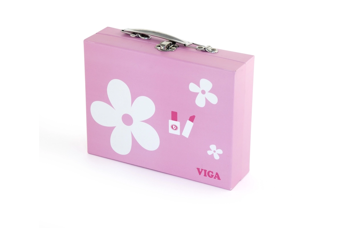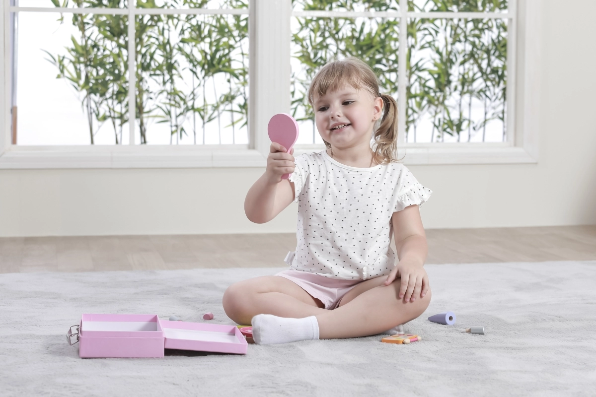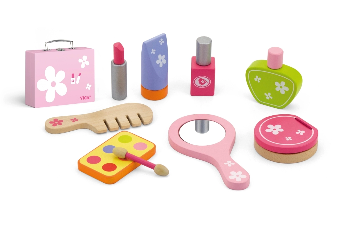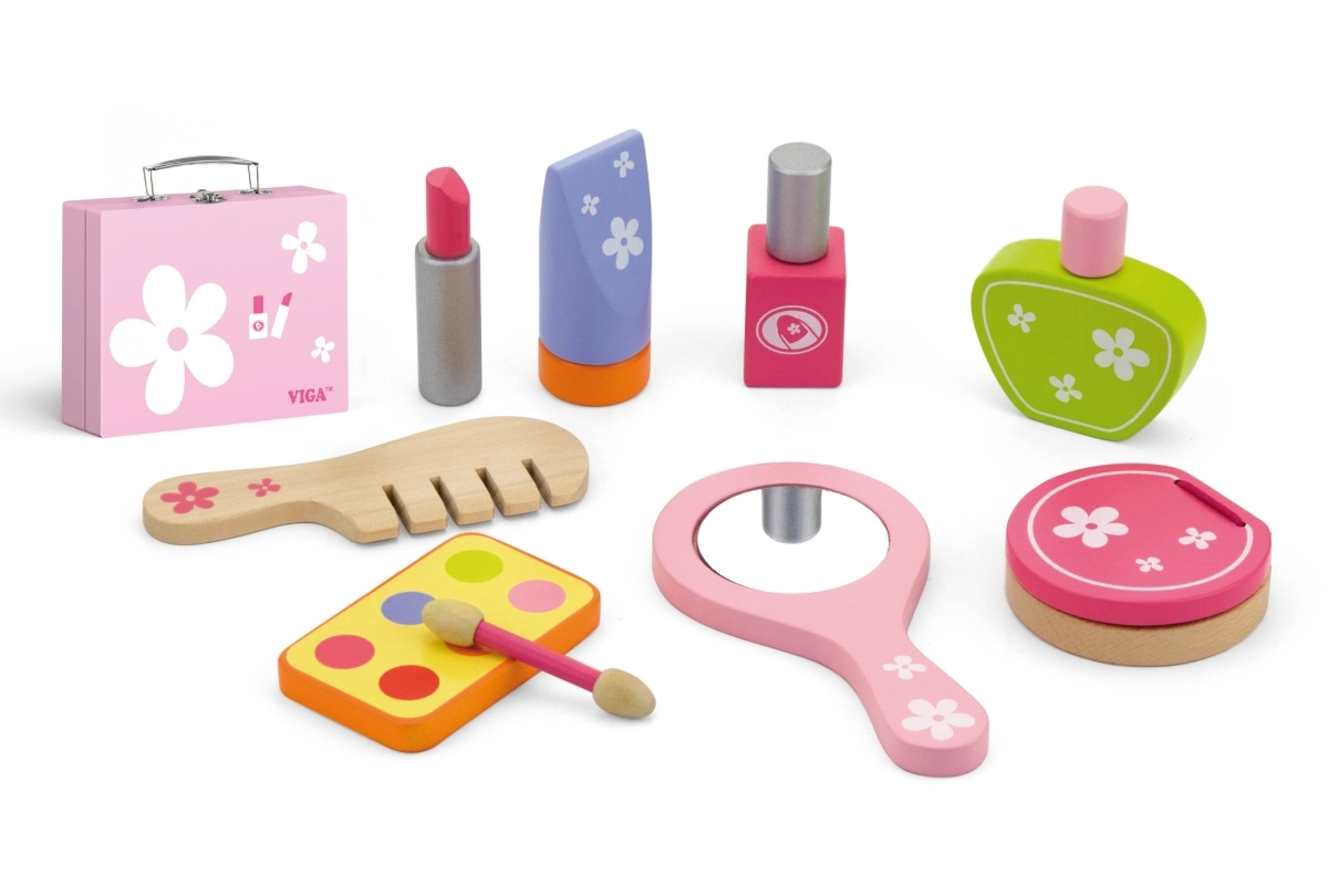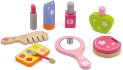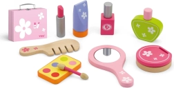 Šis koka kosmētikas komplekts koferītī sniedz bērniem prieku atdarināt pieaugušos, vienlaikus esot pilnīgi drošs. Visas sastāvdaļas ir krāsainas, patīkamas rokai un ievietotas izturīgā pārnēsājamā koferītī, tāpēc tās ir viegli sakopt un ņemt līdzi ceļā.