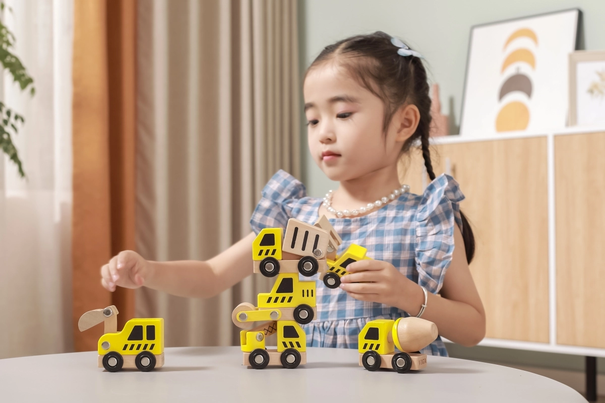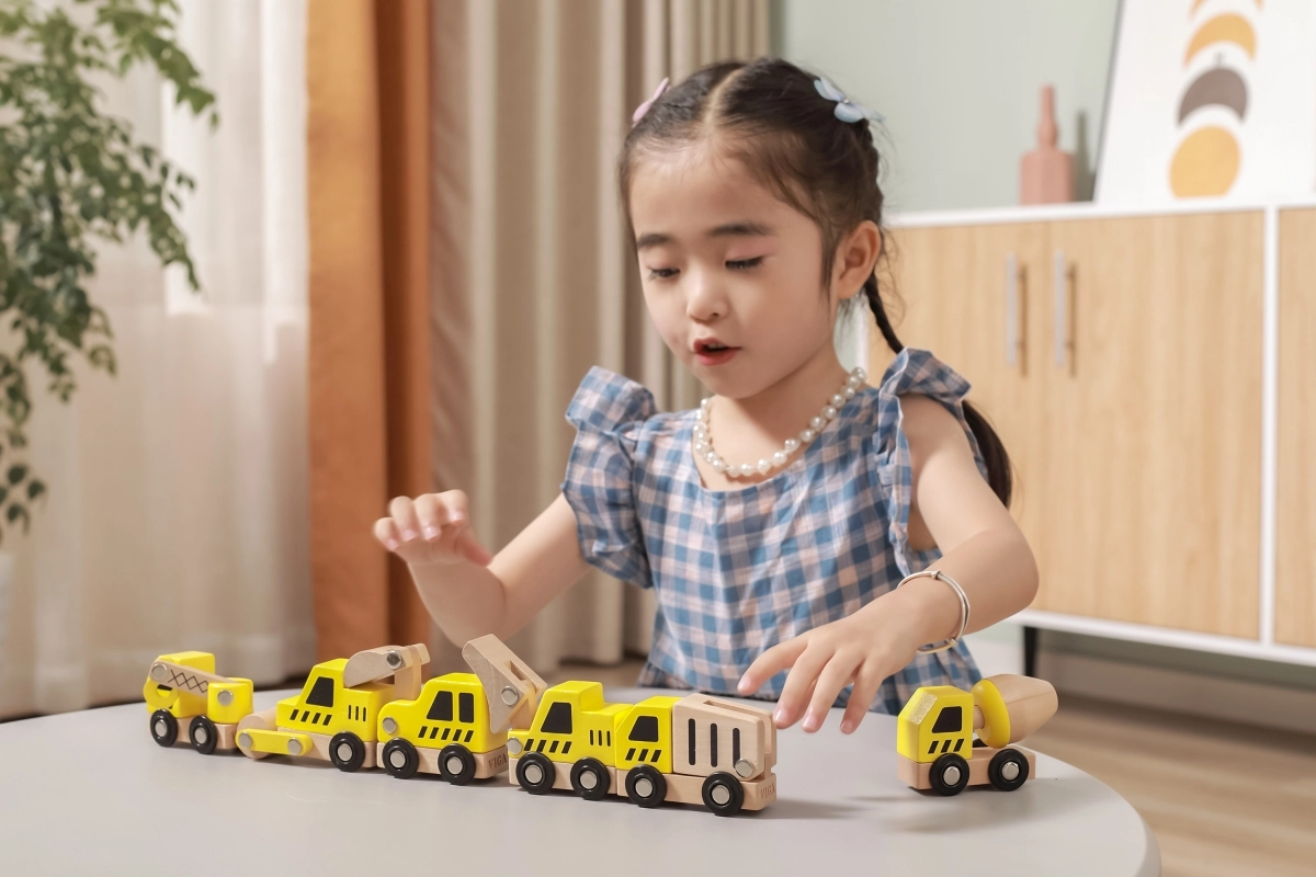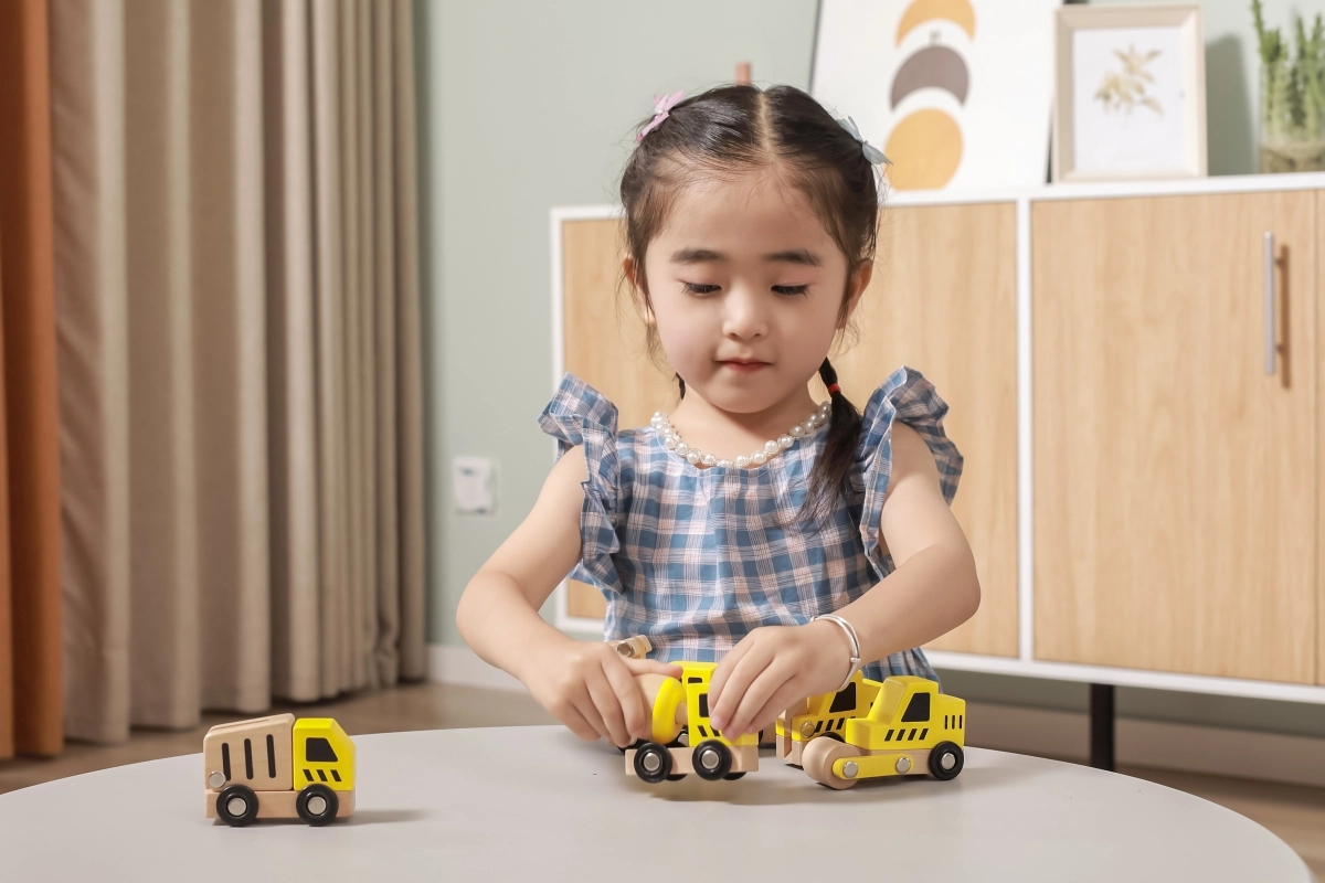 Katrai mašīnai ir funkcionējoši riteņi vienmērīgai ripināšanai, un atsevišķas detaļas attēlo kustīgus elementus (piem., kauss, maisītājs vai celtņa strēle), kas veicina dabisku zinātkāri un roku–acu koordinācijas attīstību.