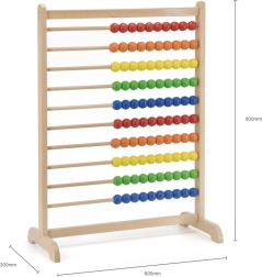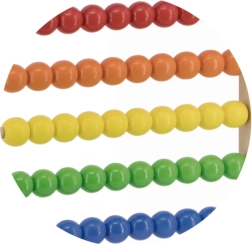 Katra rindā ir lodītes spilgtās krāsās, kas palīdz bērniem vieglāk saprast un saskaitīt. Šis vizuālais elements veicina arī radošumu un sīko motoriku.