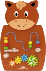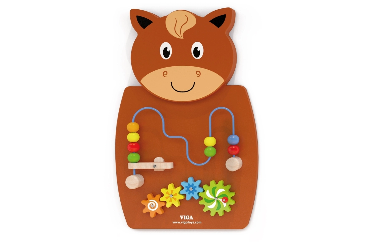 Koka aktivitāšu dēlis zirga formā ir viena no vadošajām rotaļlietām, kas attīsta bērnu radošumu un mācīšanos. Tas aprīkots ar koka zobratiem un krellu trasi uz stieples, kuras bērni var pārvietot ar sviras mehānismu. Rotaļlieta piesaista ar košām krāsām un formām, palīdzot attīstīt krāsu un formu atpazīšanu.
