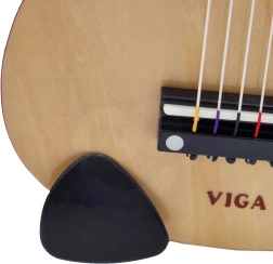Šī VIGA bērnu akustiskā ģitāra ir klasiskās ģitāras samazināta versija – tā izskatās un darbojas kā īsts instruments, tāpēc bērni ātri apgūst pareizus paradumus. Dabīgais koka korpuss ar gludu virsmu, sešas stīgas un stīgu uzvilkšanas kloķi nodrošina reālistisku spēles pieredzi un motivē regulāri vingrināties.