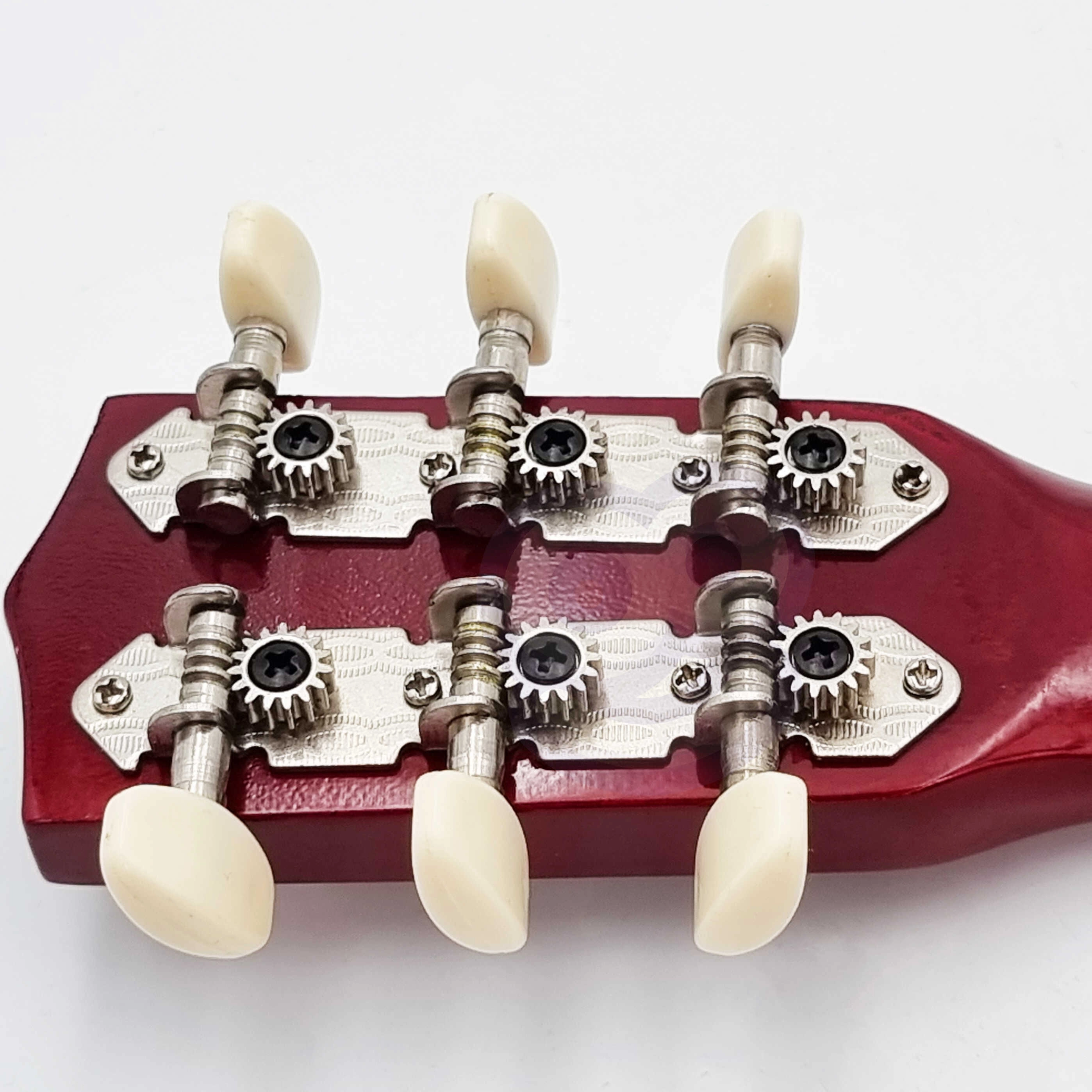 Samazināta akustiskā ģitāra ar 6 stīgām un funkcionālām mehānēm bērniem sniedz autentisku spēles sajūtu un motivē regulāri vingrināties.