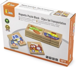 Šī aizraujošā magnētiskā rotaļlieta ļauj bērniem veidot attēlus no 4 blokiem, kas, savienoti kopā, veido pilnīgu transportlīdzekli. Tos var viegli piestiprināt pie tāfeles, padarot tos par attēla daļu vai par iedvesmu zīmēšanai. Augstas kvalitātes koksne un netoksiskas krāsas nodrošina, ka rotaļlieta ir pilnīgi droša bērniem.