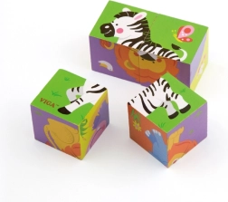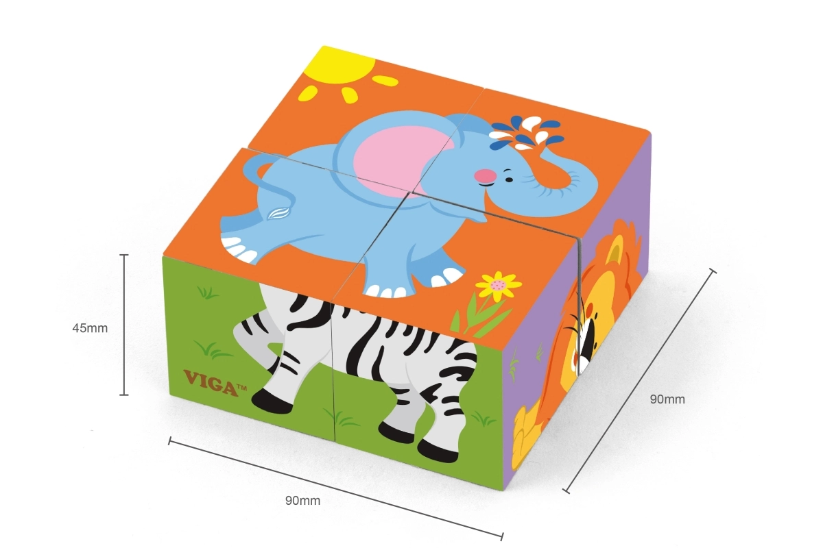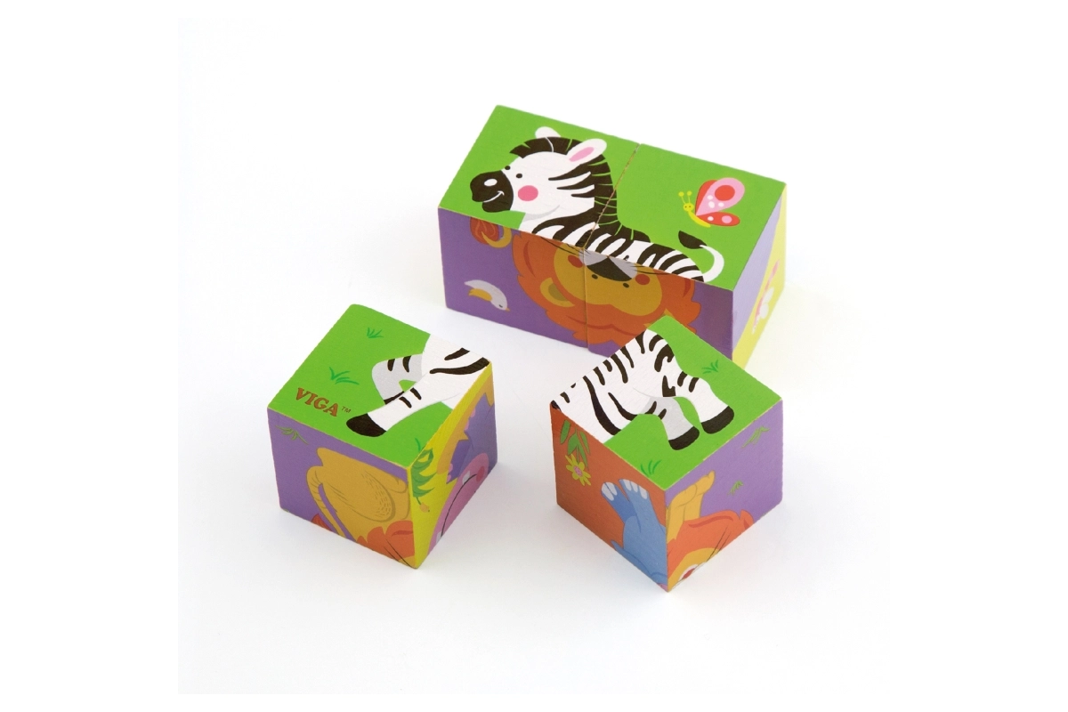 Atklājiet pirmās puzles burvību pašiem mazākajiem: VIGA koka kluči ar zoo dzīvnieku motīviem. No 4 izturīgiem koka klučiem bērni saliks 6 dažādus attēlus – ziloni, lauvu, zebru, tīģeri, nīlzirgu un lāci. Spēle veicina sīko motoriku, acs–roka koordināciju un radošumu, ir izgatavota no drošiem un videi draudzīgiem materiāliem, kā arī priecē ar košām krāsām un kvalitatīvu izpildījumu.