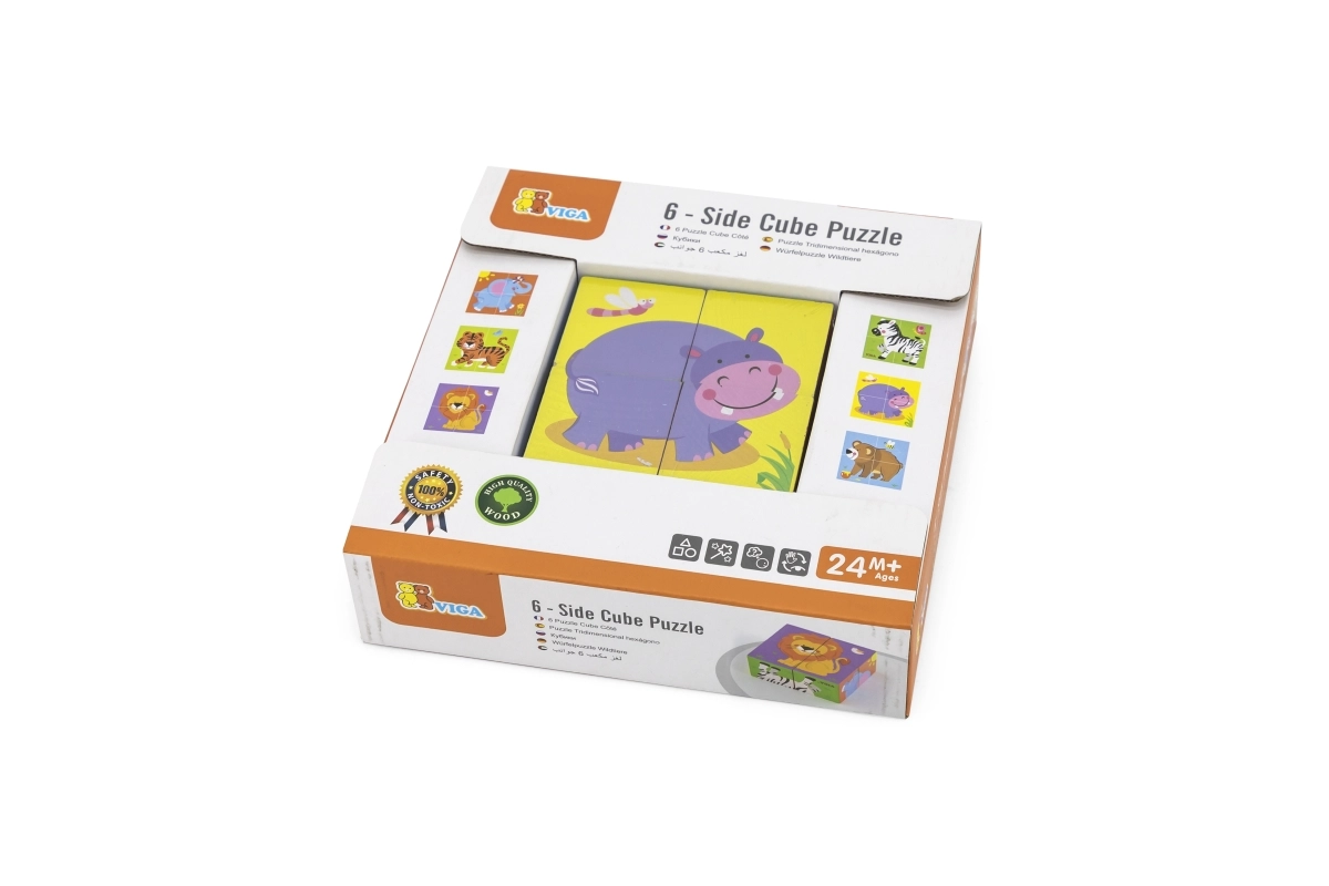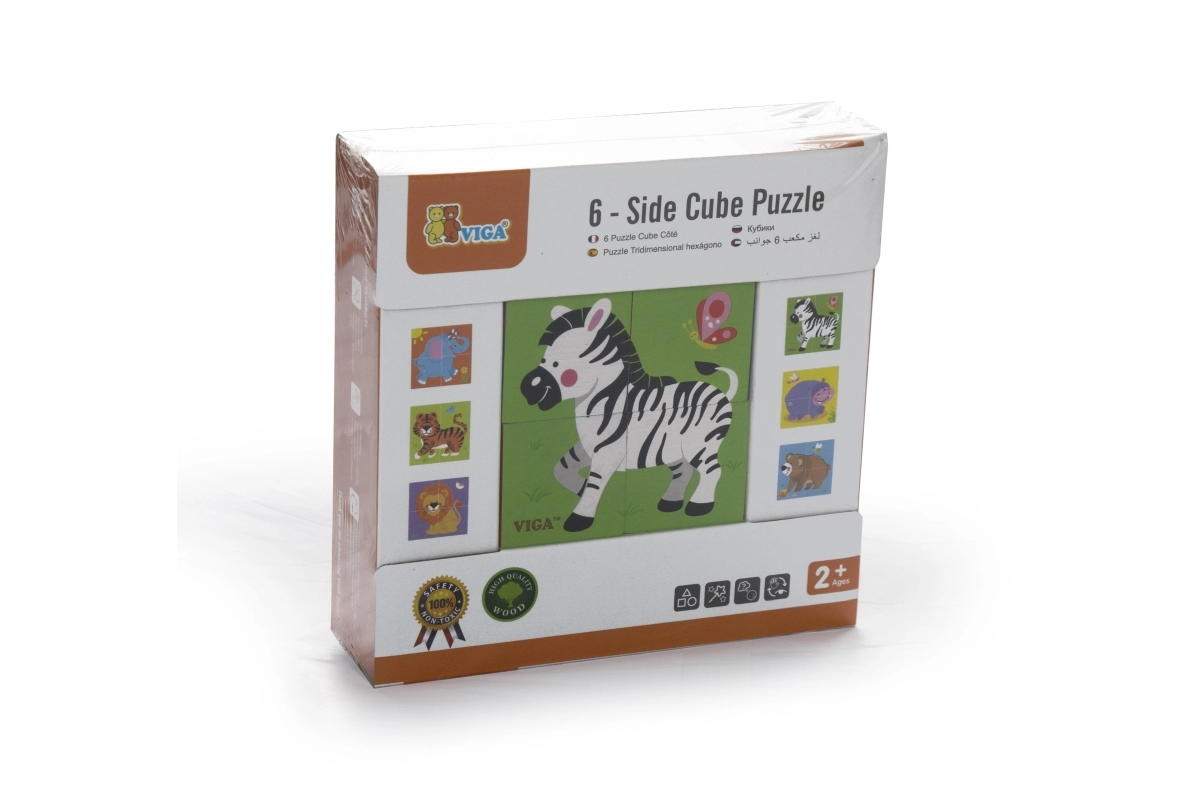 VIGA Zoo koka puzle ir ideāla pirmā puzle bērniem no 2 gadu vecuma. Četri izturīgi kluči kopā veido sešas jautras dzīvnieku ilustrācijas, kas mudina uz atklāšanu un attīsta iztēli. Spēle ir intuitīva, aizraujoša un lieliski trenē koncentrēšanos un pacietību.