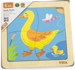 Viga koka puzle satur četras tematiski saskaņotas detaļas, kuras viegli novietot uz attēla pamatnes. Katra detaļa ir izgatavota no kvalitatīvas koksnes un krāsota ar drošām, netoksiskām krāsām, kas nodrošina bērnu un vides drošību.