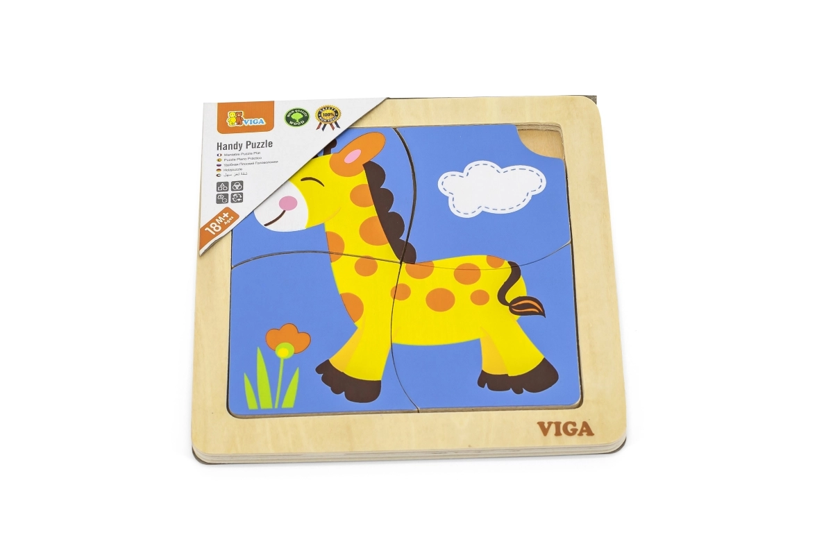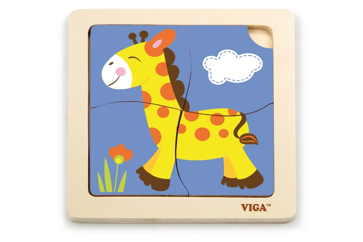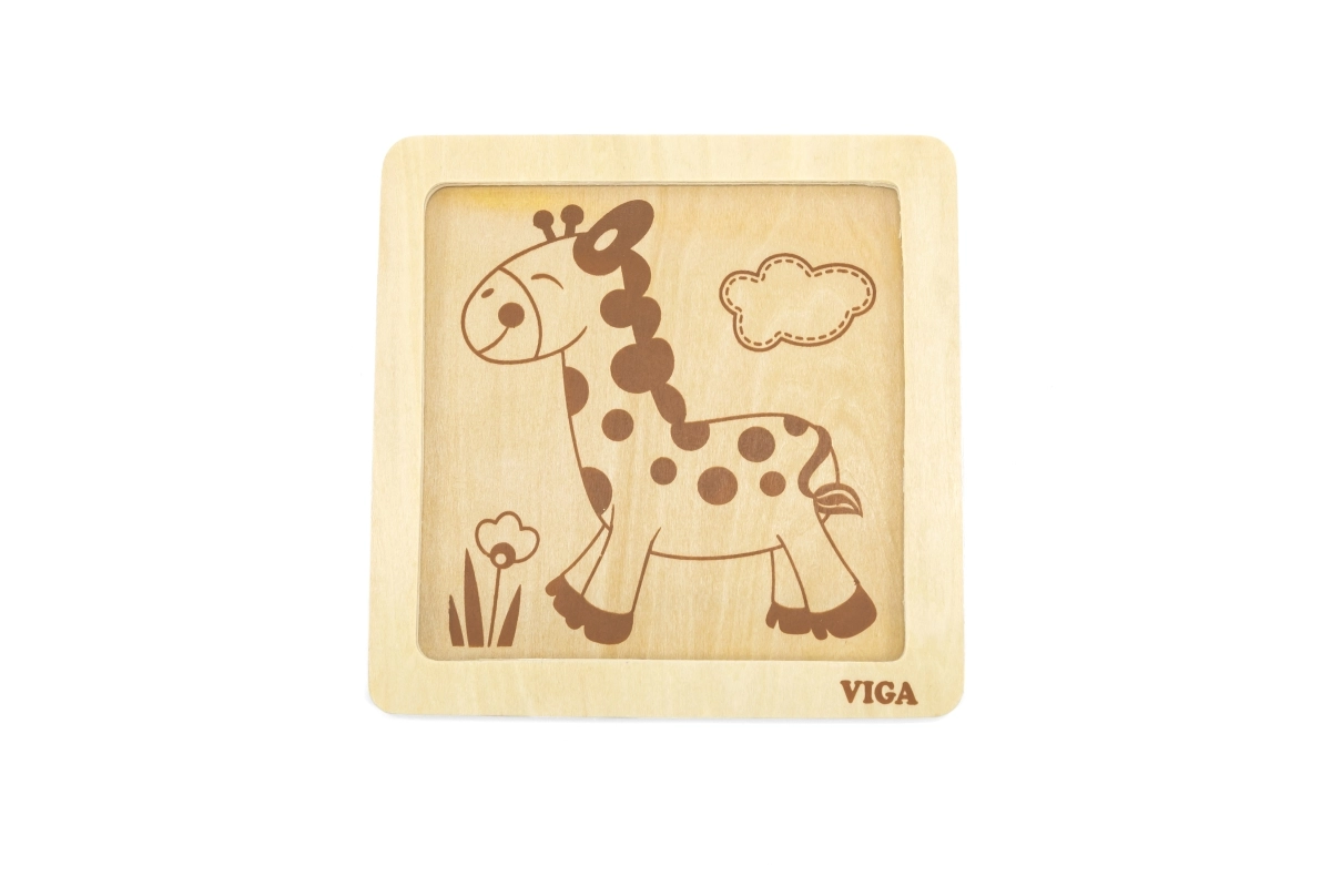 Bagātiniet bērna rotaļas ar gudro Viga koka puzli, kas iepazīstina bērnus ar fantāzijas un atklājumu pasauli. Ar palīdzību no četrām koši krāsotām žirafes detaļām bērni mācās attīstīt: