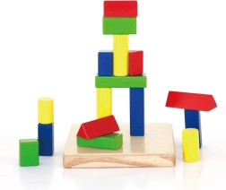 - koka pamatne ar tapām un krāsainu ģeometrisku gabaliņu komplekts