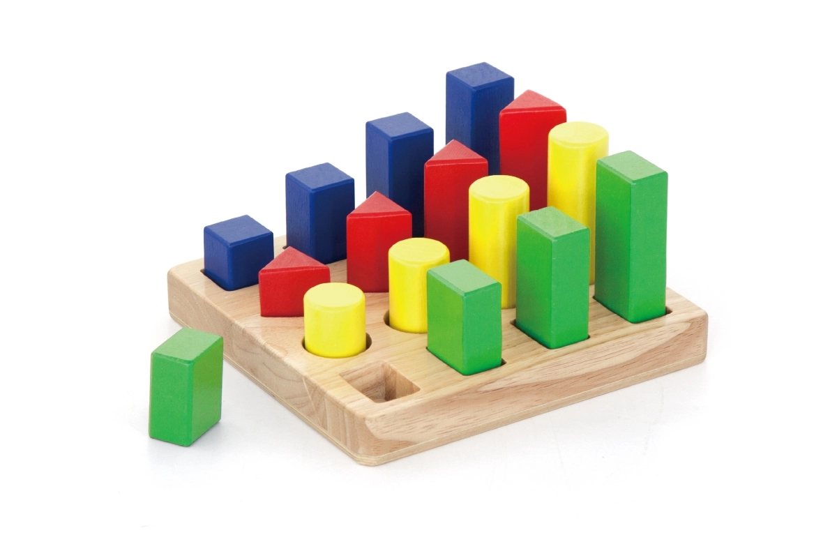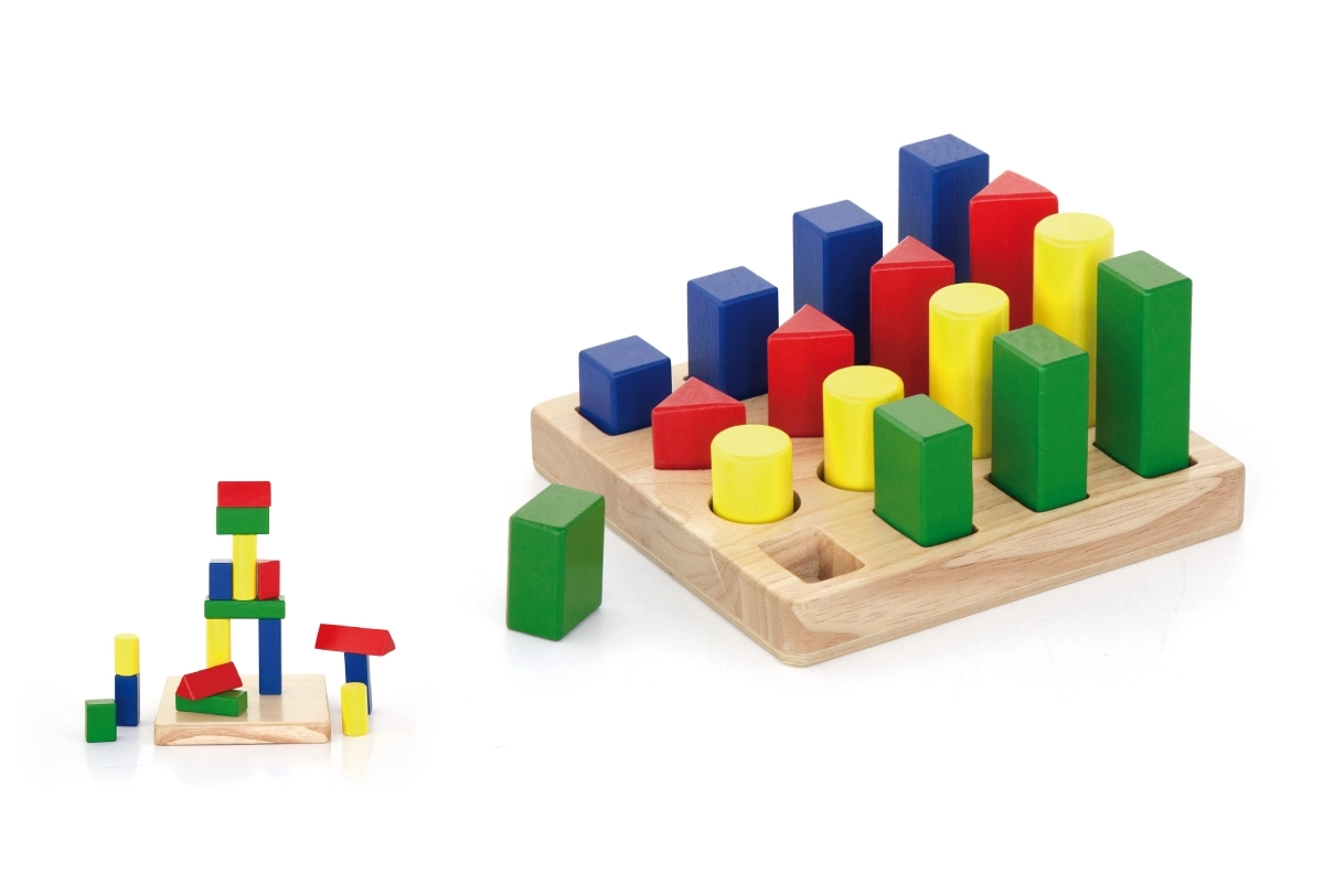 Gudrs koka ieliktnis krāsu un formu apguvei attīsta smalko motoriku, loģisko domāšanu un roku–acu koordināciju. Izturīga koka pamatne un koši gabaliņi mudina spēlēties atkal un atkal. Ideāli bērniem no 24 mēnešiem, kompakti izmēri mājām un ceļošanai.