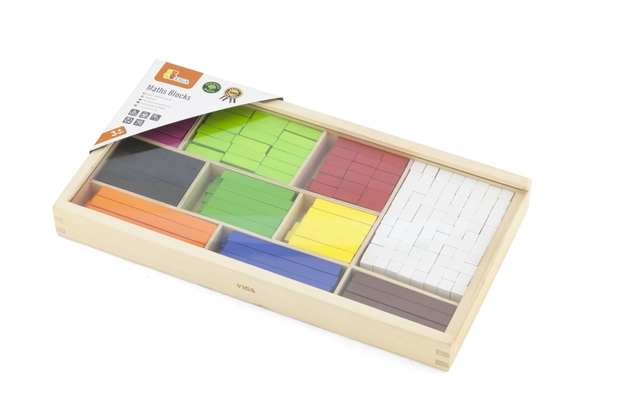Komplektā ir 308 koka nūjiņas 10 standarta garumos un krāsās, sakārtotas izturīgā kastītē ar nodalījumiem. Lieliski piemērots mājmācībai un skolas darbam, gan individuālām aktivitātēm, gan grupu uzdevumiem.