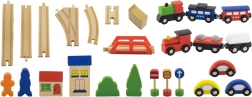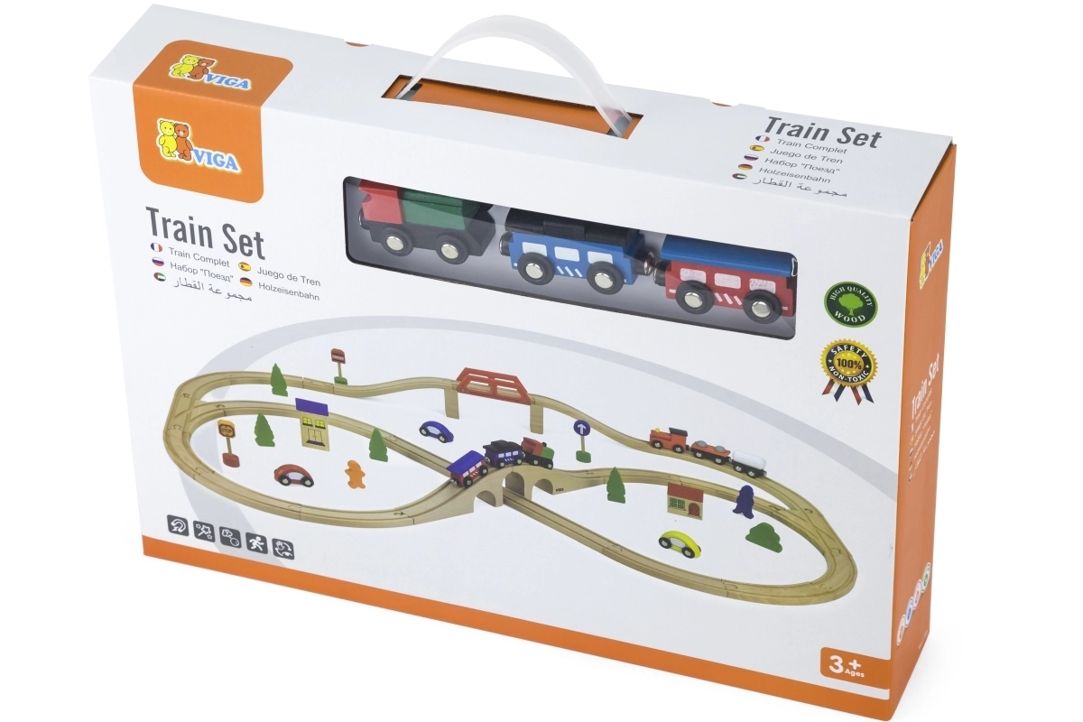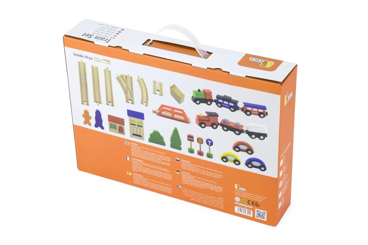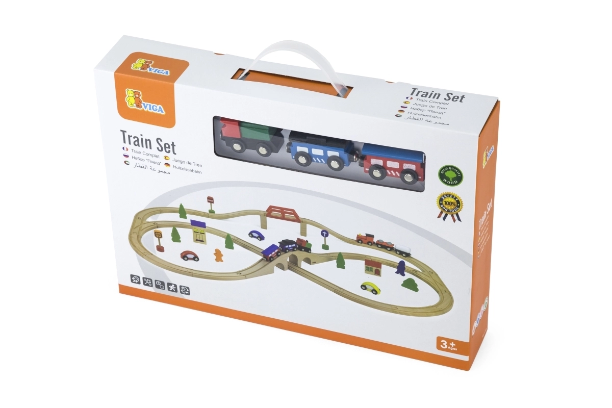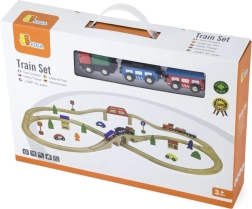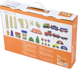 Atklājiet izklaidi mazajiem vilcienu vadītājiem – šī bagātīgi aprīkotā koka vilciena trase piedāvā līdz pat 49 detaļām radošai būvēšanai un spēlei. Komplektā ir sliedes, 2 lokomotīves, 4 vagoni, 3 mašīnītes un daudz aksesuāru, kas veicina sīko motoriku, iztēli un koordināciju. Ideāla dāvana bērniem no 3 gadu vecuma.