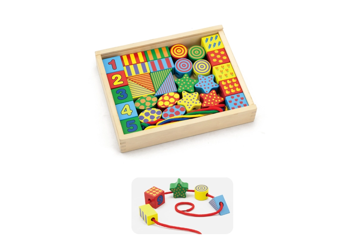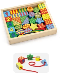 Atklājiet radošu rotaļāšanos ar VIGA koka vēršanas komplektu – kastīti, kas pilna ar košām formām, ko vērt uz aukliņām kā krelles. Attīsta sīko motoriku, acs–roka koordināciju un krāsu un formu apguvi. Detalizēti izstrādātas kvalitatīva koka daļas ar netoksiskām krāsām un lielu izmēru drošai satveršanai.