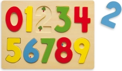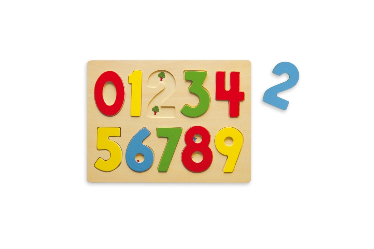 Krāsains koka ieliktnis ar cipariem 0–9 palīdz bērniem apgūt ciparus, attīsta sīko motoriku, loģisko domāšanu un acs–roka koordināciju. Izturīgs koka izpildījums, patīkamas krāsas un gludas malas nodrošina drošu un aizraujošu spēli bērniem no 3 gadu vecuma.