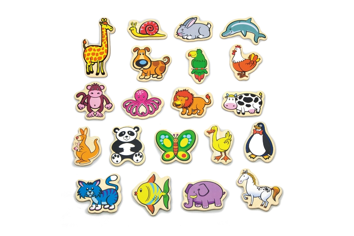 - Komplektā ir 20 dažādi dzīvnieki – neviens gabals nav vienāds; atradīsiet mājas, fermas, safari un jūras dzīvniekus.