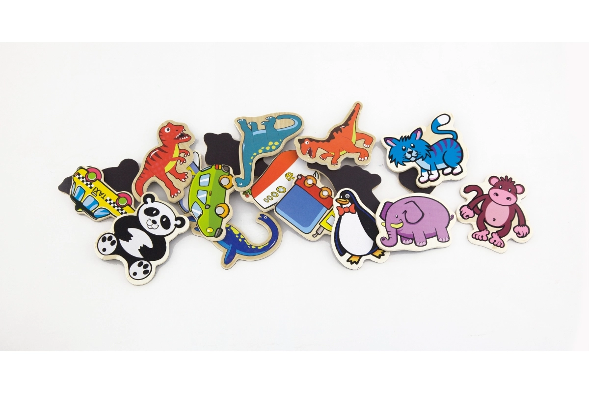 Magnēti ir izgatavoti no lakota koka un krāsoti ar netoksiskām krāsām, kas ir drošas bērnu rotaļām un izklaidei.