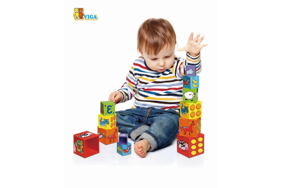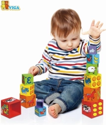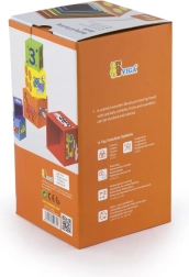 Radīts bērniem no 12 mēnešiem. Lielākā kubiņa izmēri ir 11 x 11 cm, kas ir ideāli mazām rociņām.