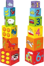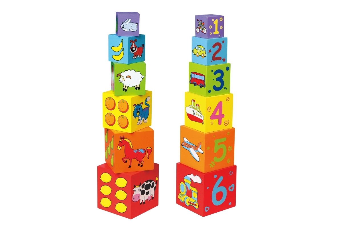 Katra kubiņa malas ir krāsaini iezīmētas un rotātas ar attēliem – dzīvnieki, cipari, augļi un transports. Šī daudzveidība piedāvā daudz iespēju izzināšanai un mācībām.