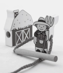 Izklaide iet roku rokā ar mācīšanos: bērns spēlējoties iepazīst dzīvi lauku sētā un tajā mītošos dzīvniekus. Visi elementi ir izgatavoti no lakota koka un krāsoti ar netoksiskām krāsām, nodrošinot drošas un priecīgas rotaļas.