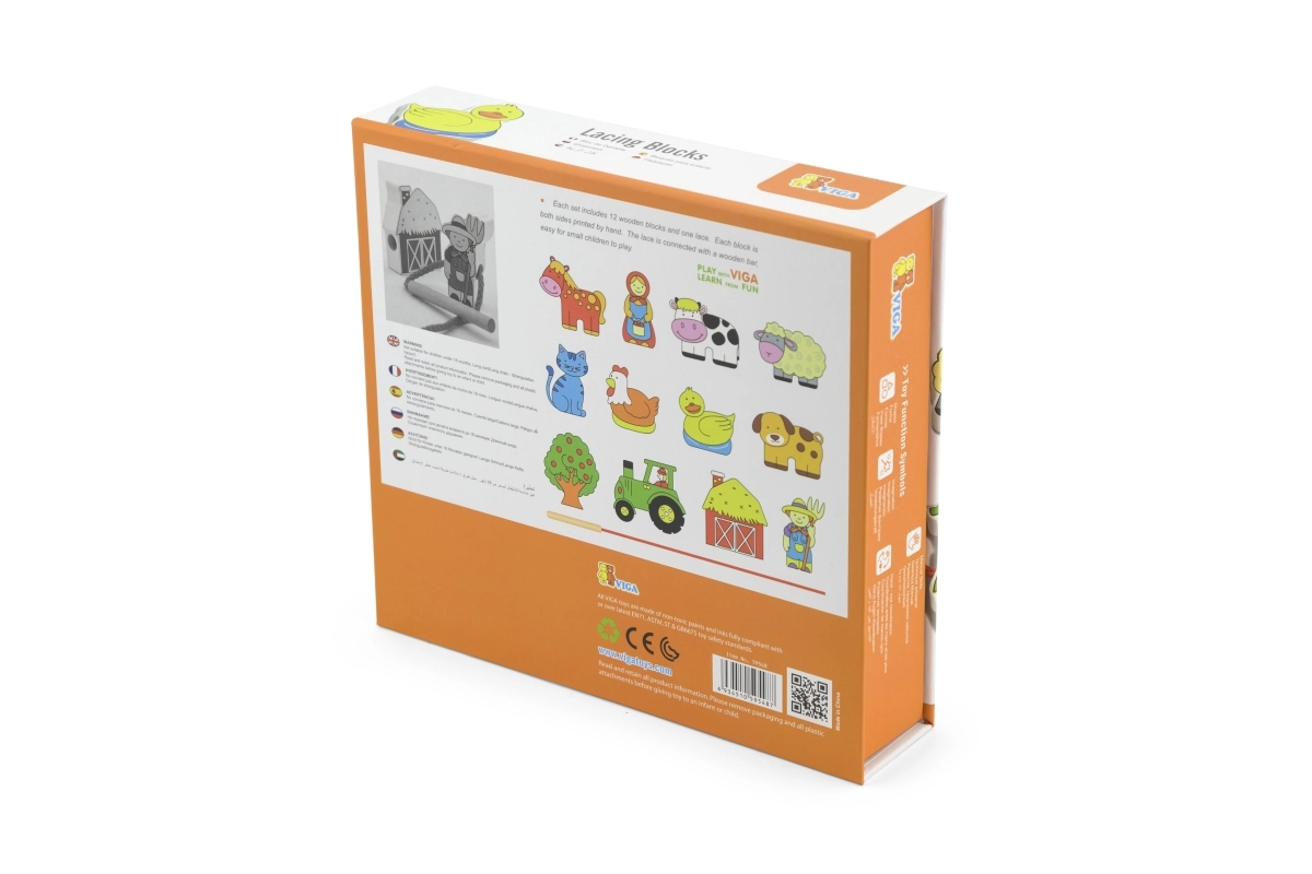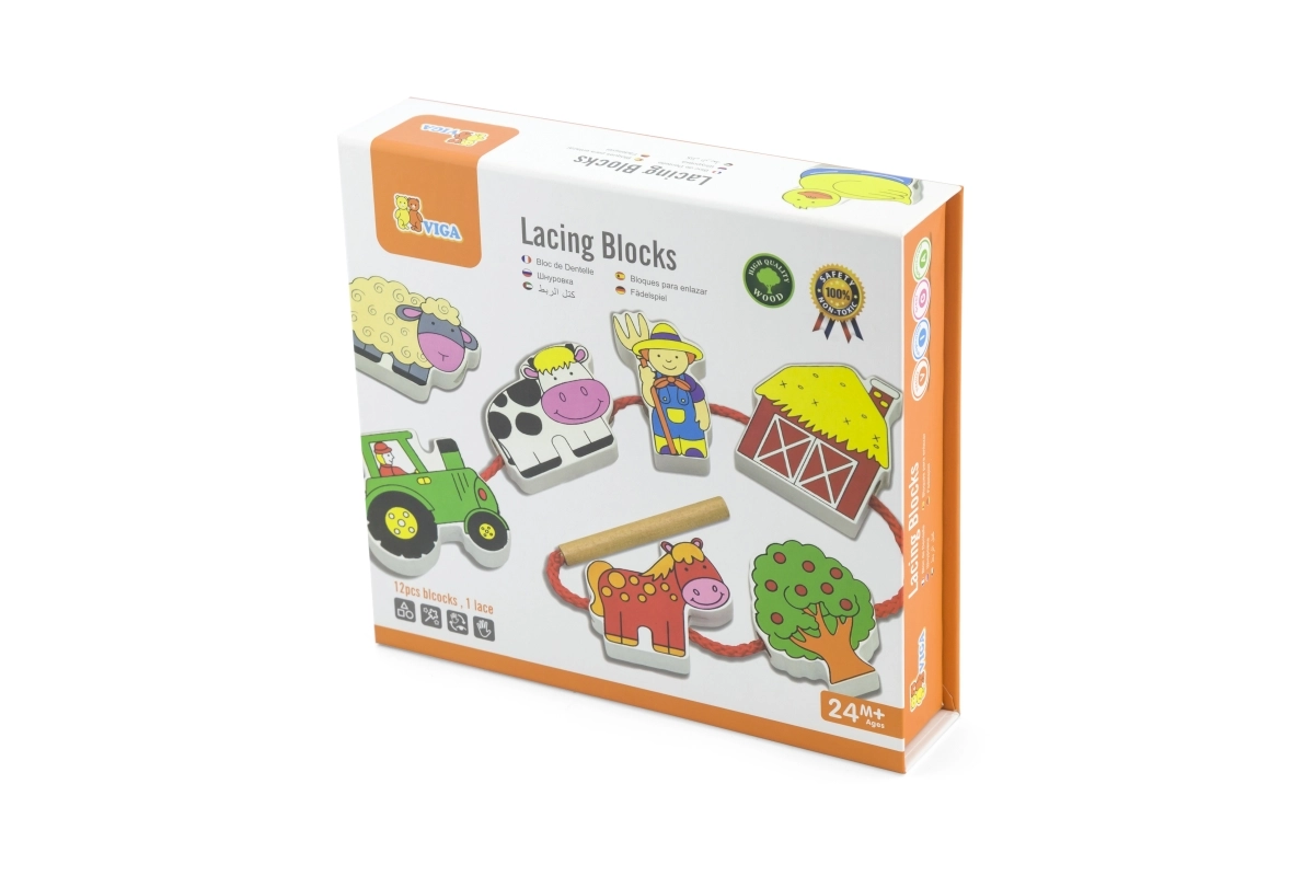 VIGA Koka Veramie Lauksaimniecības Klucīši ir radīti, lai aizrautu ikvienu bērnu. Komplektā ir 12 krāsaini klucīši ar lauksaimniecības motīviem, kurus bērns var vērt kopā, izmantojot iekļauto auklu. Pieejamas dažādas formas, piemēram, govs, pīle, kaķis, vista, suns, zirgs, aita, lauksaimnieks un viņa sieva, traktors, šķūnis un ābele.