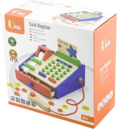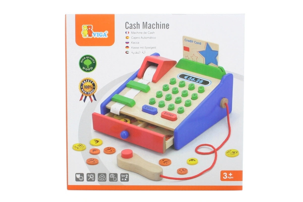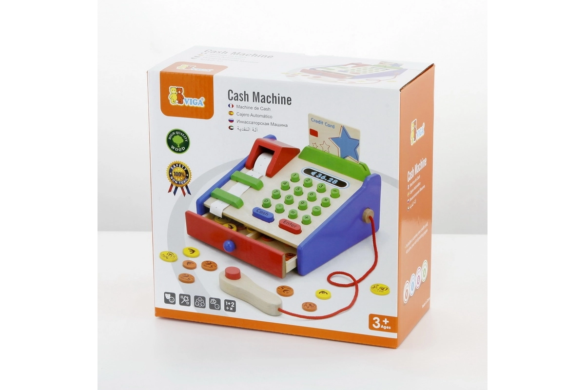 Kase izgatavota galvenokārt no koka un papildināta ar izturīgām plastmasas detaļām. Ideāli piemērota veikala spēlei mājās vai bērnudārzā, kur dabiski attīsta loģisko domāšanu, kognitīvās prasmes un attiecības ar skaitļiem Montessori garā.