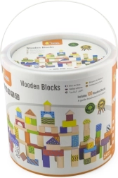 Atklājiet jautru koka klucīšu komplektu mazajiem būvētājiem! Spainītī atradīsiet 100 detaļas dažādās formās un krāsās, kā arī attēlu brošūru ar idejām būvēšanai. Spēle ar klucīšiem attīsta sīko motoriku, radošumu un telpisko iztēli, ideāli bērniem no 2 gadu vecuma. Praktiskais spainītis ar rokturi atvieglo glabāšanu un pārnēsāšanu.