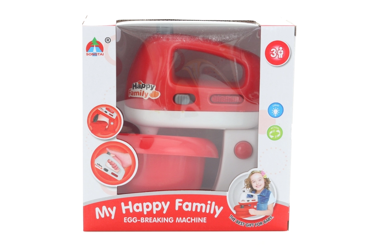 Izklaides plastmasas mikseris mazajiem pavāriem no 3 gadu vecuma. Nospiežot pogu, griežas putošanas slotiņas un mikseris spīd, nodrošinot bērniem reālistisku gatavošanas pieredzi. Darbojas ar 2× AA baterijām (nav iekļautas komplektā).