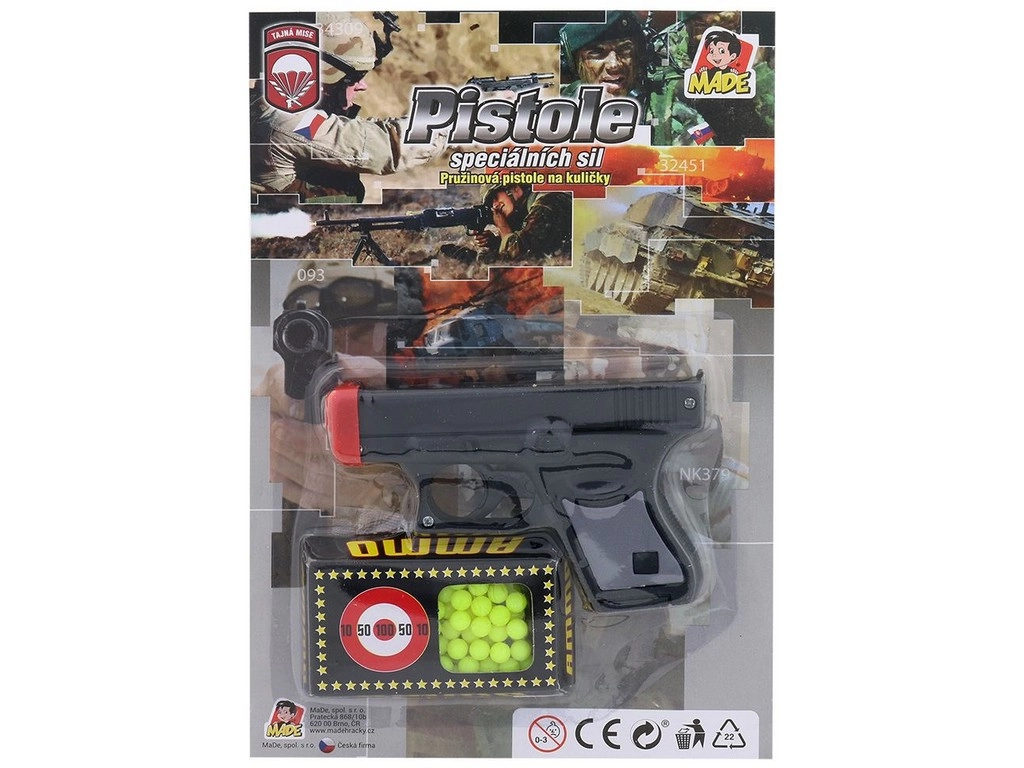 Rotaļlieta ir izstrādāta ar uzsvaru uz drošību un vienkāršu lietošanu. Karte ar čehu dizainu priecēs kā dāvana un ir arī praktisks iepakojums. Patronas – lodītes var viegli iegādāties, tāpēc izklaide tik drīz nebeigsies.