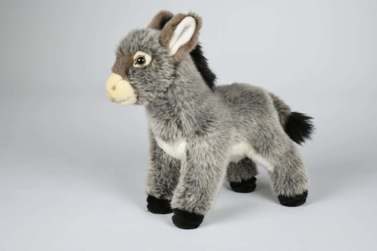 Atklājiet šī pūkainā ēzelīša burvību, kas piedāvā ne tikai maigumu un sirsnību, bet arī lielisku izgatavošanas kvalitāti. Šī mantiņa ir izveidota, domājot par drošību un komfortu: