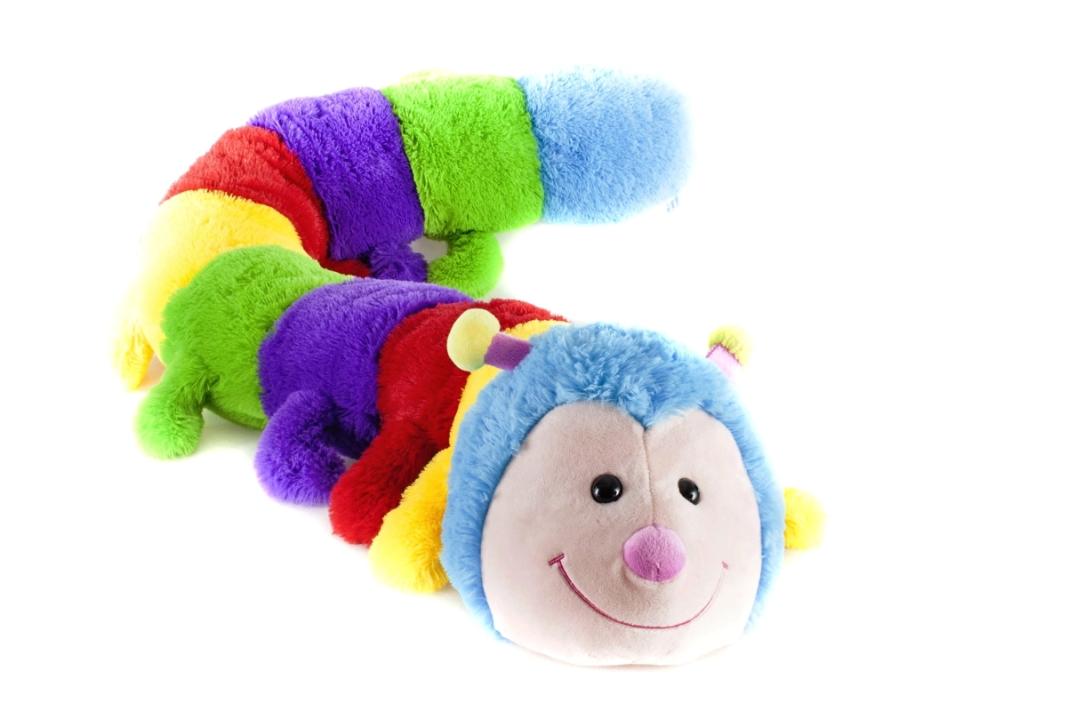 Šis krāsainais plīša kāpurs iekaros gan pašus mazākos, gan lielākus bērnus. Pateicoties aptuveni 155 cm garumam, tas ir lielisks kā mīļdraugs gultiņā, mīksts ceļabiedrs un rotaļīgs elements bērnu stūrītī. Maigs, pieskārienam patīkams materiāls nodrošina maksimālu komfortu un drošu saskari mazuļiem no 0 gadu vecuma.