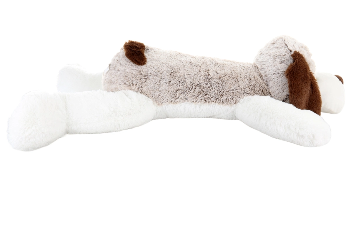 Šis lielais guļošais plīša sunītis iepriecinās ikvienu bērnu un dzīvnieku mīļotāju. Tas ir patīkami mīksts, maigs pieskārienam un, pateicoties 100 cm izmēram, lieliski der kā mīļš draugs, galvas spilventiņš vai dekoratīvs akcents gultiņā vai bērnu stūrītī. Kvalitatīvs izpildījums un smalkas detaļas nodrošina drošas un ērtas rotaļas arī pašiem mazākajiem.
