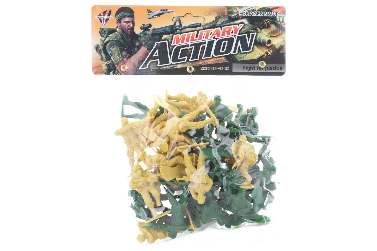 Attīstiet bērnu fantāziju un taktisko domāšanu ar klasiskajiem plastmasas kareivīšiem. Divi krāsu ziņā atšķirti komplekti ļauj viegli sadalīt komandas un doties aizraujošās cīņās vai veidot pašiem savus scenārijus. Pateicoties kompaktajiem iepakojuma izmēriem, bērni var ņemt rotaļlietu līdzi jebkur.