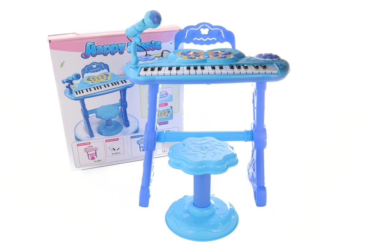 Kopā ar klavierītēm tiek piegādāts bērnu krēsliņš, lai bērni varētu ērti apsēsties un spēlēt.