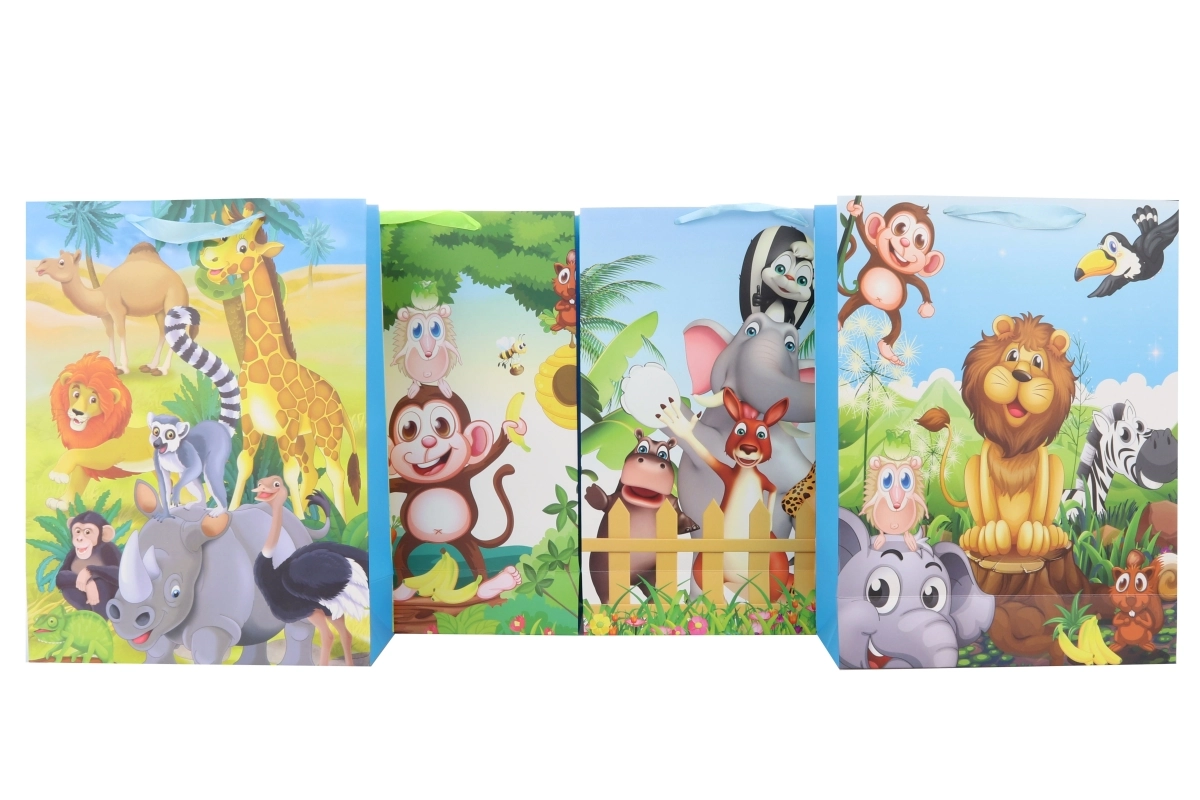 Stilīga dāvanu soma ar safari motīvu lielā formātā iepriecinās ikvienu saņēmēju. Pateicoties izmēriem apmēram 50 × 40 cm, tā ietilpina arī lielākas dāvanas, un tās izturīgais izpildījums nodrošina ērti un droši pārnēsāšanu. Lieliska izvēle dzimšanas dienām, svētkiem un citām īpašām reizēm. Pieejama 4 dažādos dizainos ar safari motīviem.
