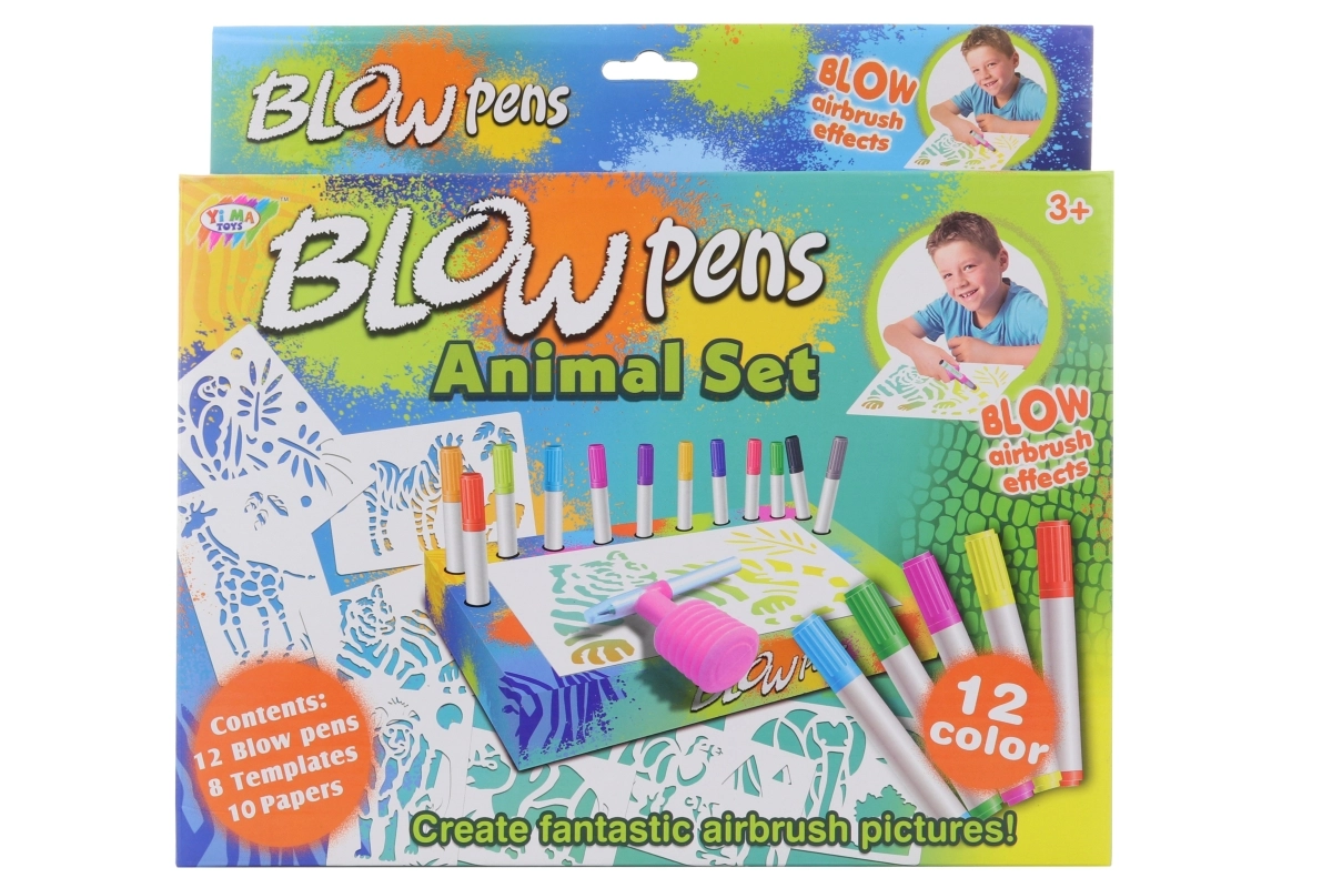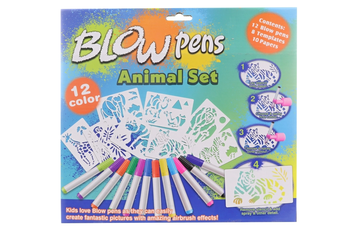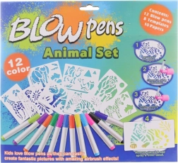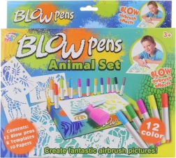 Ar šo lielo pūšamo flomāsteru komplektu bērni viegli izveidos oriģinālus safari dzīvnieku attēlus. Pateicoties uzgalim ar pumpīti nav vajadzīgs spēcīgs elpas vilciens – krāsa tiek uzklāta ar maigu strūklu, veidojot efektīgus pāreju un ēnojuma risinājumus. Praktiskais statīvs un turētājs palīdz uzturēt flomāsterus kārtībā vienuviet.