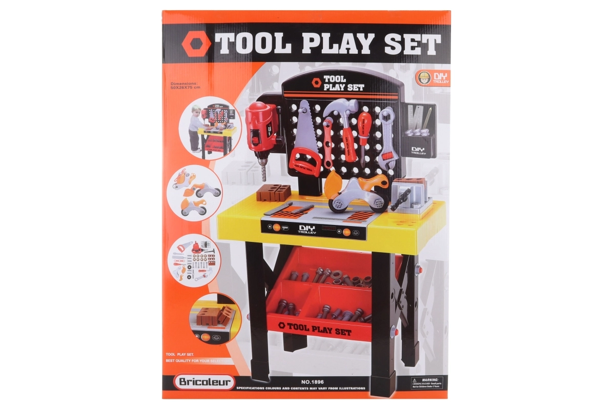Liels plastmasas darba sols mazajiem meistariem piedāvā bagātīgu aprīkojumu un reālistiskas funkcijas. Ietver galda urbjmašīnu, skavu, ēveli, zāģi, āmuru, atslēgas un citu piederumu. Ideāli piemērots smalkās motorikas attīstīšanai, radošai spēlei un drošai iepazīšanai ar instrumentiem.
