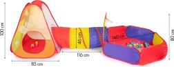 - Telts, tunelis, sausais baseins, 100 plastmasas bumbiņas, 3 Velcro bumbiņas