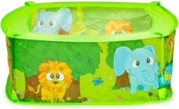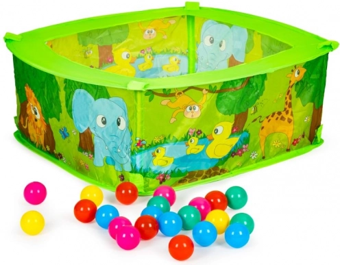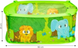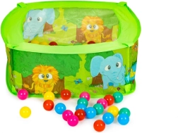 Šis jautrais bērnu aploks ar bumbiņām ir ideāls rotaļu stūrītis pašiem mazākajiem. Pateicoties krāsainajam dizainam un rotaļīgajiem motīviem, tas veicina sīkās motorikas, acu–roku koordinācijas un maņu uztveres attīstību. Komplektā ir 50 plastmasas bumbiņas, kas rosina aktīvām spēlēm un krāsu šķirošanai.